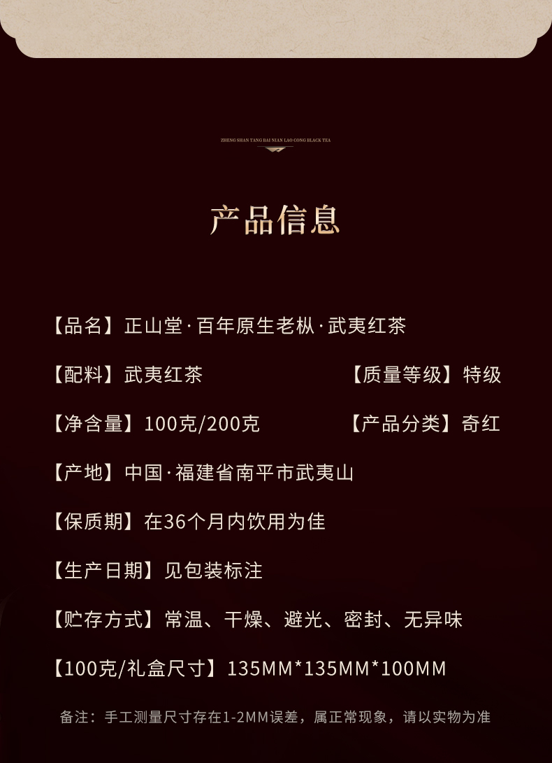 正山堂 百年老枞红茶礼盒装 正山小种红茶特级正宗武夷红茶送礼100g/200g