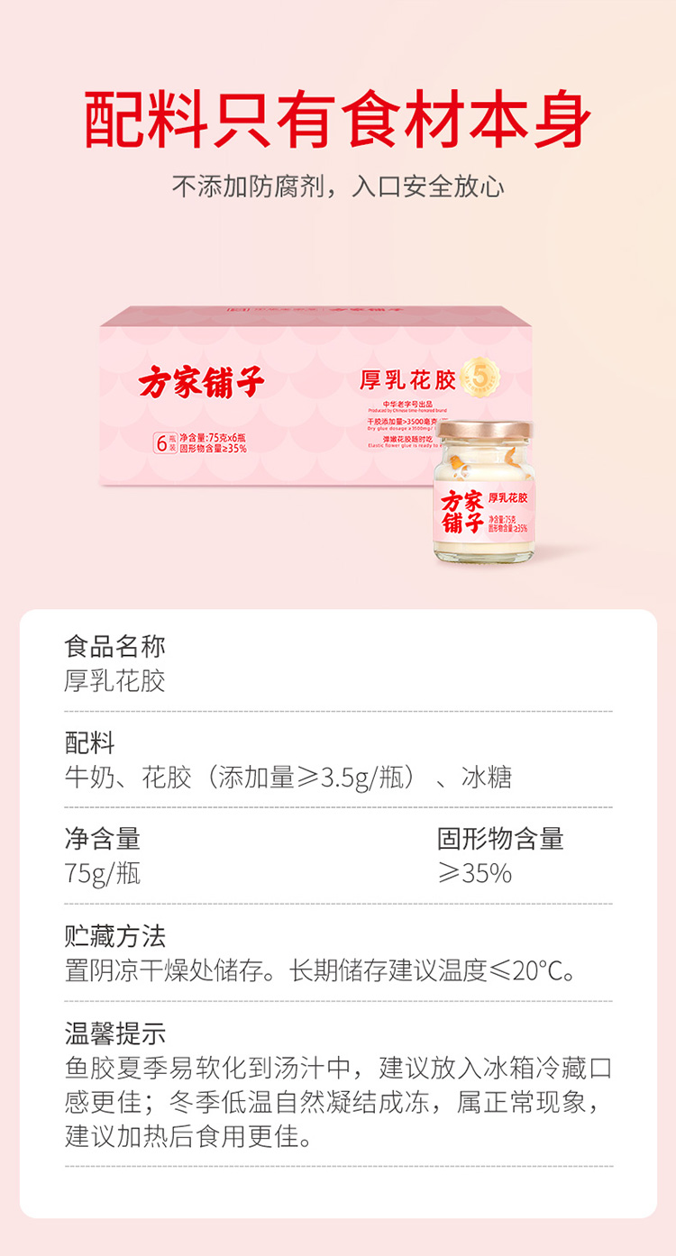 方家铺子 厚乳花胶450g(75gX6)/盒装(固形物≥35%)