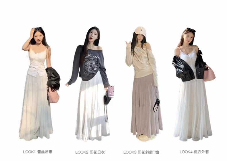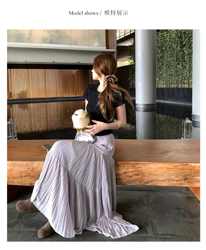 【视觉显高 仙气飘飘】梦惠妮雨雾紫藤压褶半裙仙女裙 透气雪纺 细腻亲肤