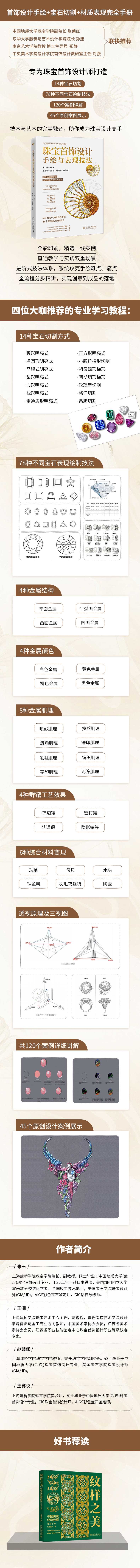 三位大咖推荐的专业学习教程: 14种宝石切割方式 78种不同宝石表现绘制技法 4种金属结构 4种金属颜色 8种金属肌理 4种群镶工艺效果 6种综合材料变现 共120个案例详细讲解 45个原创设计案例展示