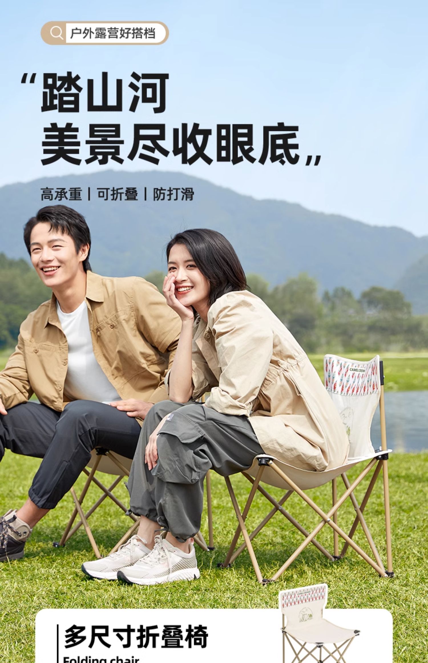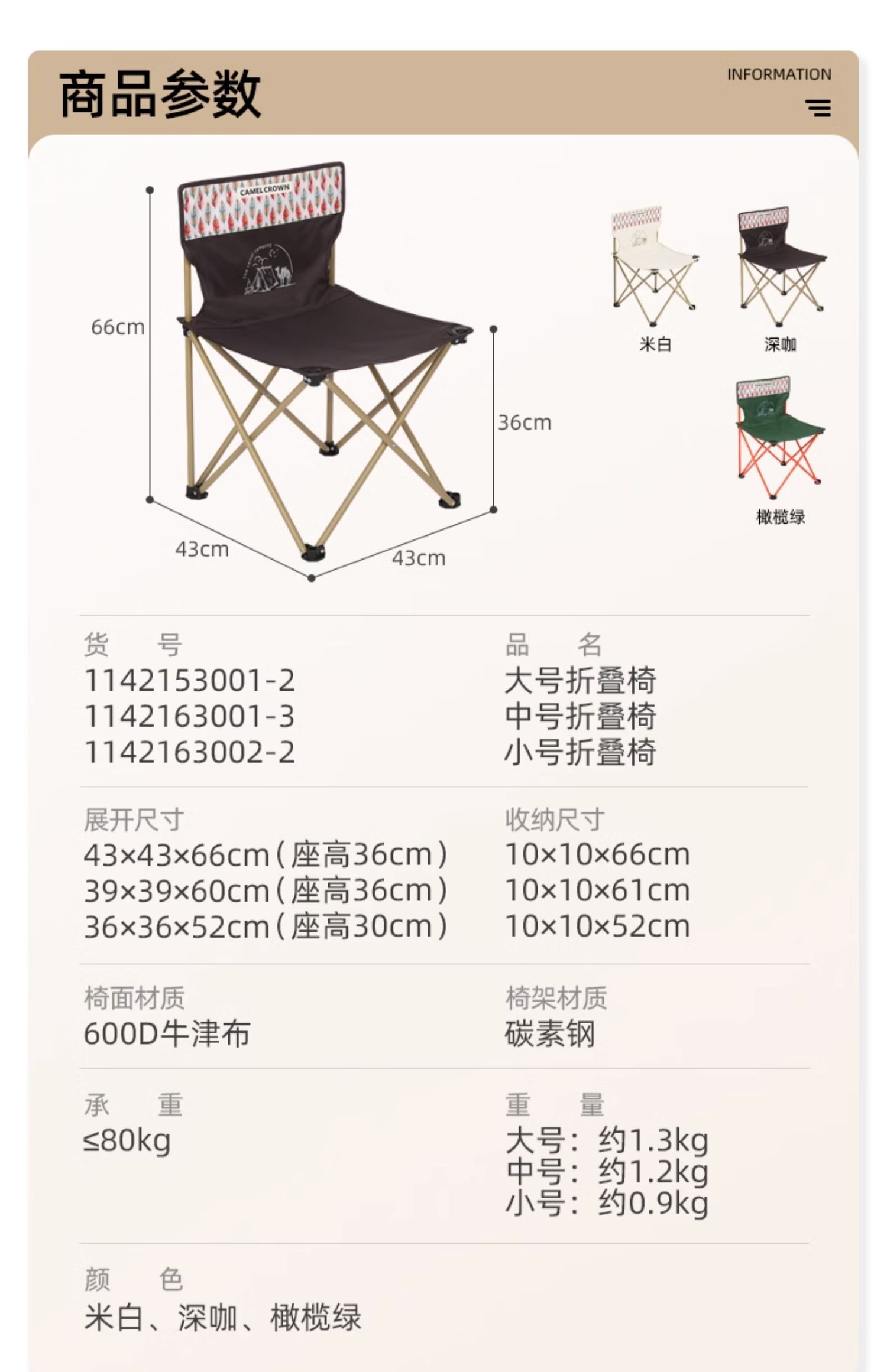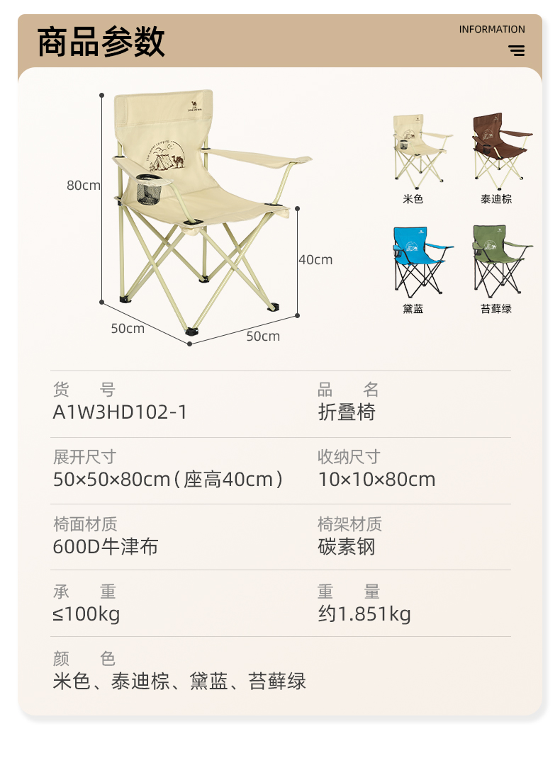 骆驼户外椅子露营钓鱼凳子野餐板凳美术生写生月亮椅折叠椅轻便 1142163002-2_1142163001-3_1142153001-2