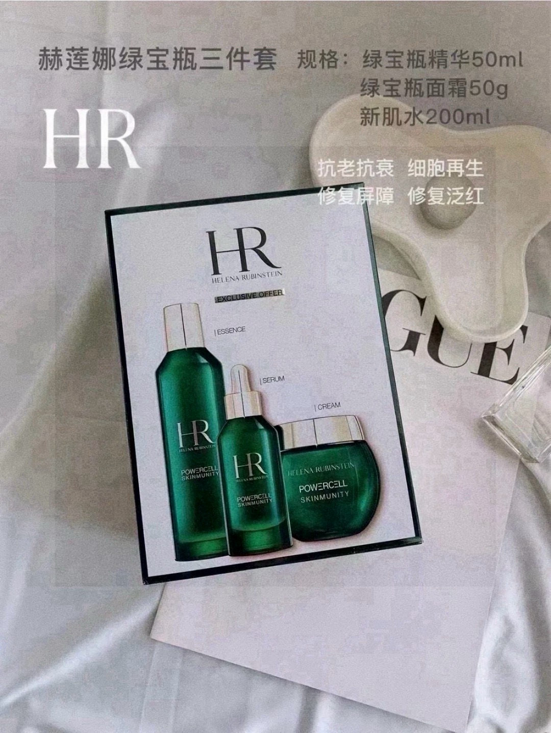 HR绿宝瓶三件套配专柜手提袋 高端版本活新生套装HR套装终于来了 HR 赫莲娜绿宝瓶3件套有悦活蓄能爽肤水(200ml)小绿瓶精华(50ml)小绿瓶面霜(50ml)💯值!🌟🔘 抗皱、修复、补水、去黄,全球每3分钟即售出1瓶的口碑绿宝瓶精华系列!全效强化肌肤,植物原生细胞,再生及防御配方,平滑粗燥肤质,绽放健康焕活亮采,肌肤触感柔滑细! 15日后,你就会发现肌肤展现更年轻状态(不支持试用 塑封拆毁概不退换)退货请手提袋一并退回谢谢!