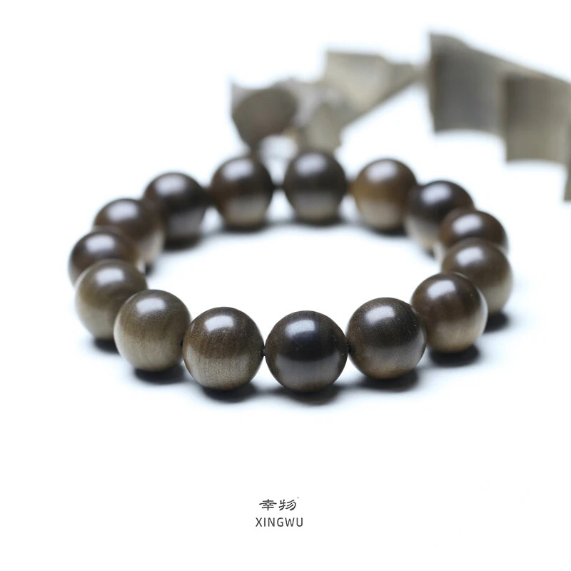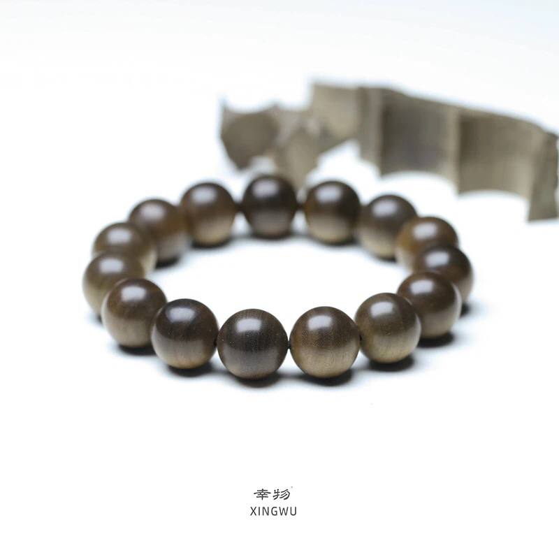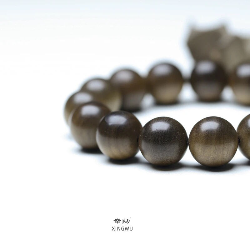 老山檀香本就香气醇厚,阴沉料更是韵味独特,淡雅悠长,戴在腕间,低调又有品。