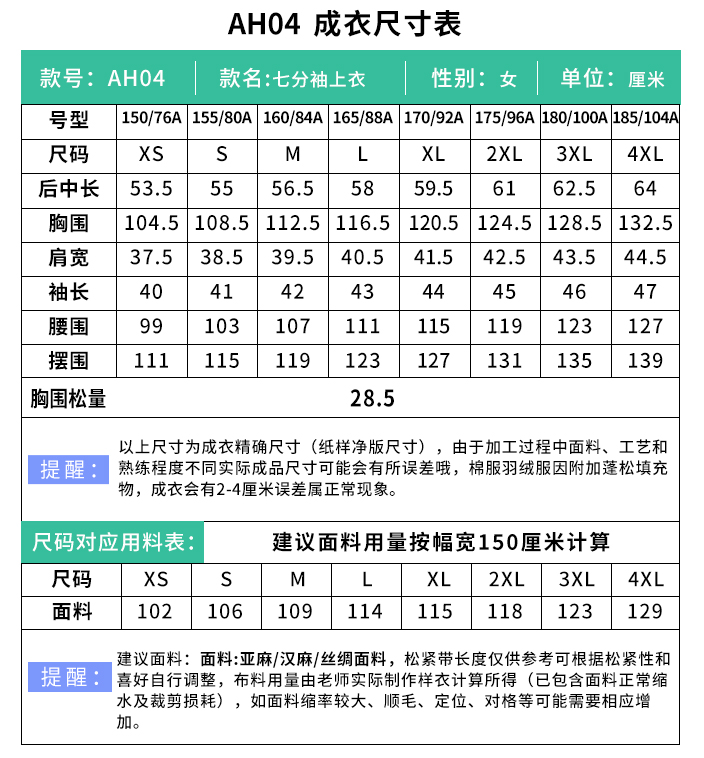 裁缝学苑AH04七分袖衬衫纸样女装小衫上衣样板版型图纸