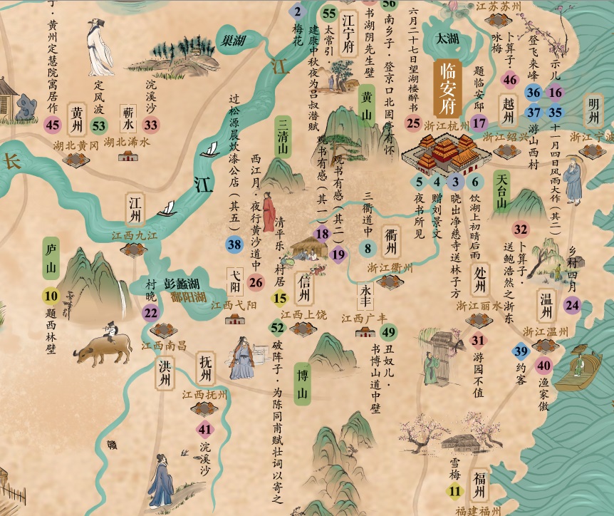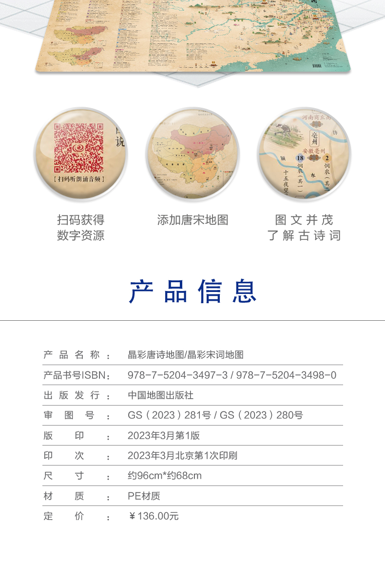 晶彩唐诗宋词地图+彩绘唐诗宋词地图