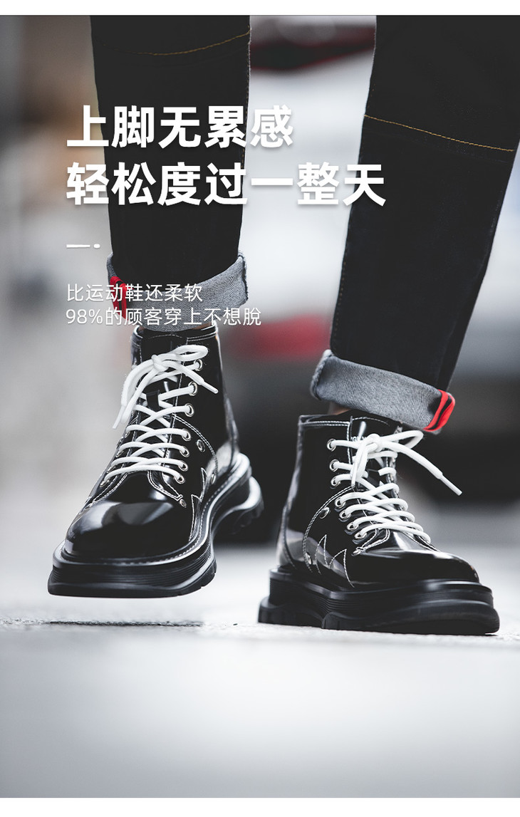 高帮鞋内增高男鞋厚底工装真皮中帮马丁靴男增高潮鞋