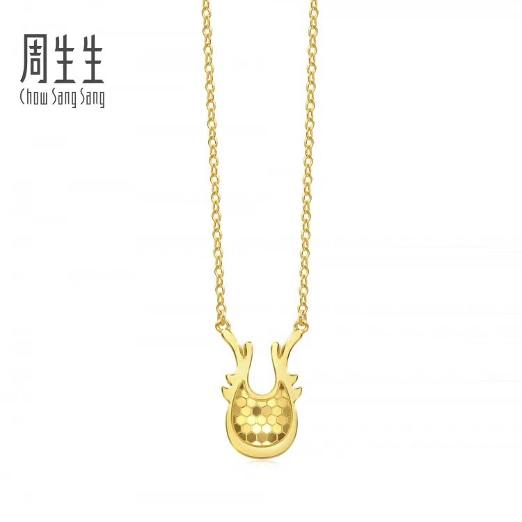 【欣欣向龙】2楼周生生黄金足金亮镜金龙闪闪项链生肖龙94307N