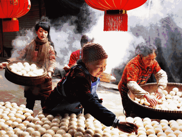 🏮【打年糕】年糕又称"年年糕",与"年年高"谐音,寓意着人们的工作和生活一年比一年好。