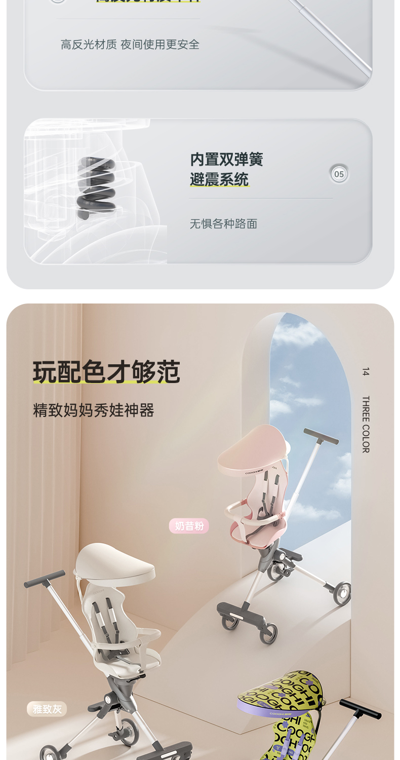 COOGHI酷骑遛娃神器可坐可躺轻便可折叠高景观