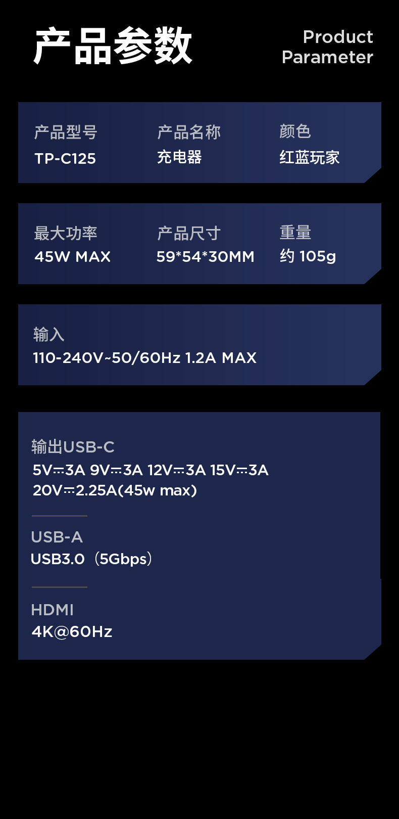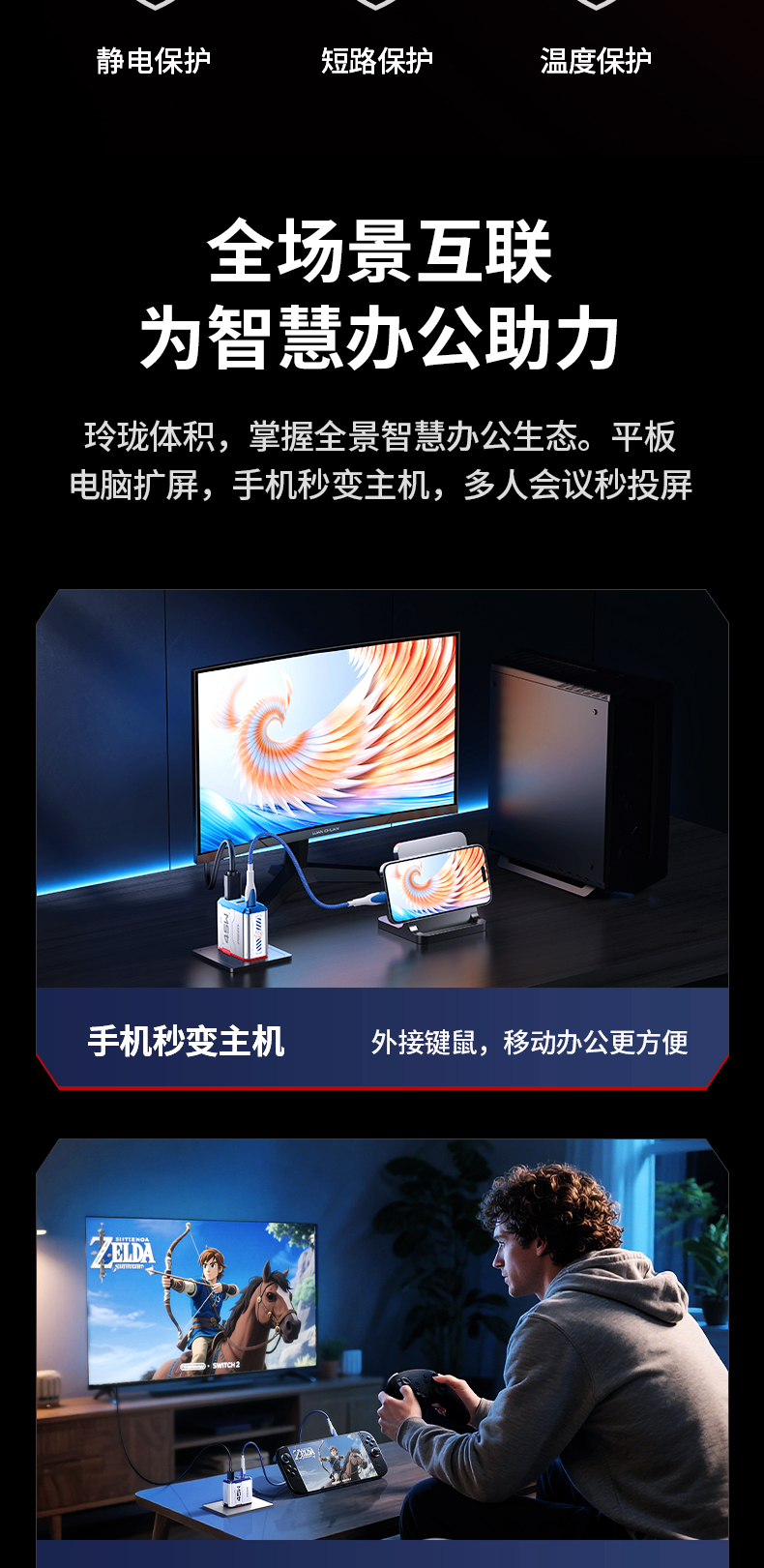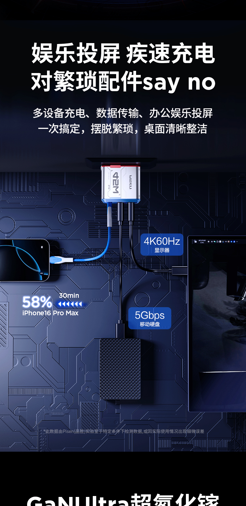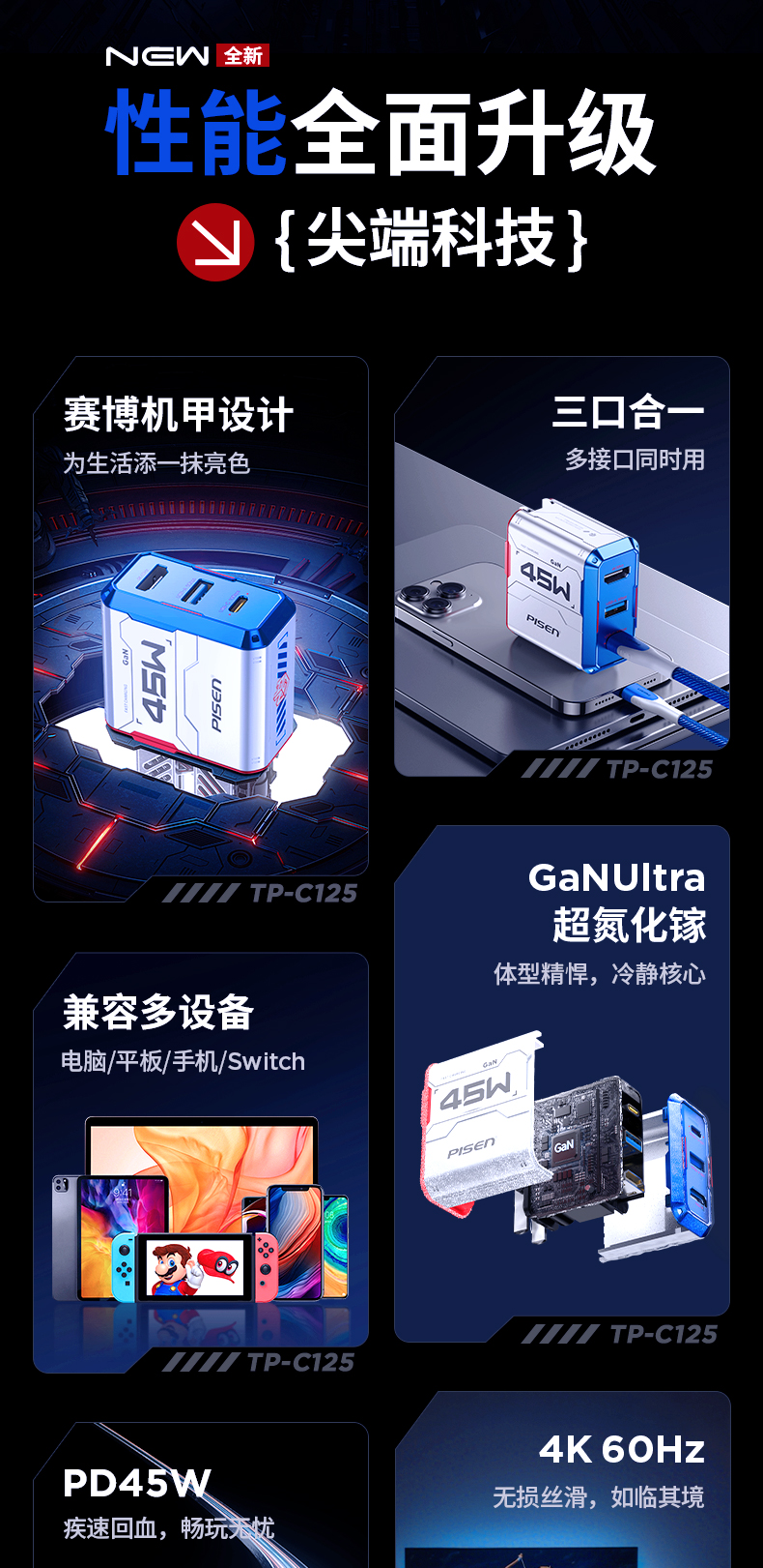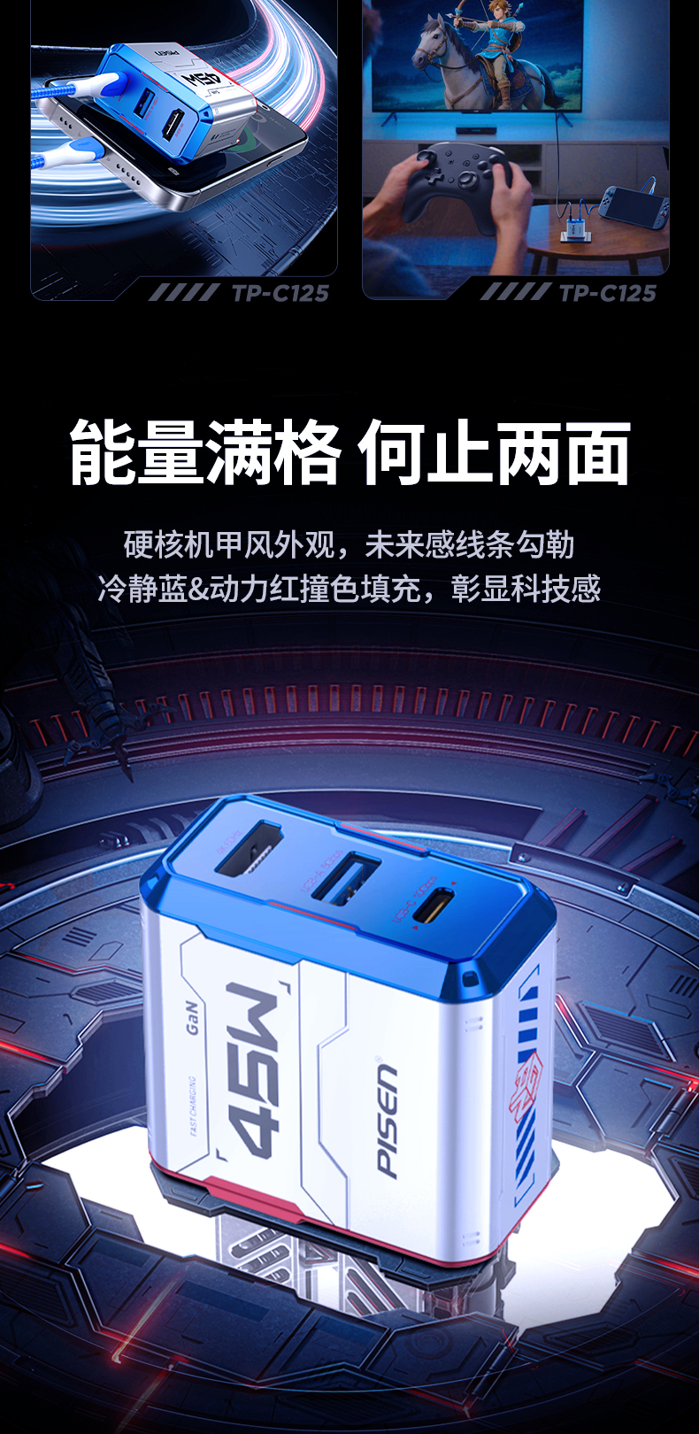 品胜 Gamer系列45W GaNHub氮化镓旅充拓展坞套装 快充数据线支持安卓/苹果设备
