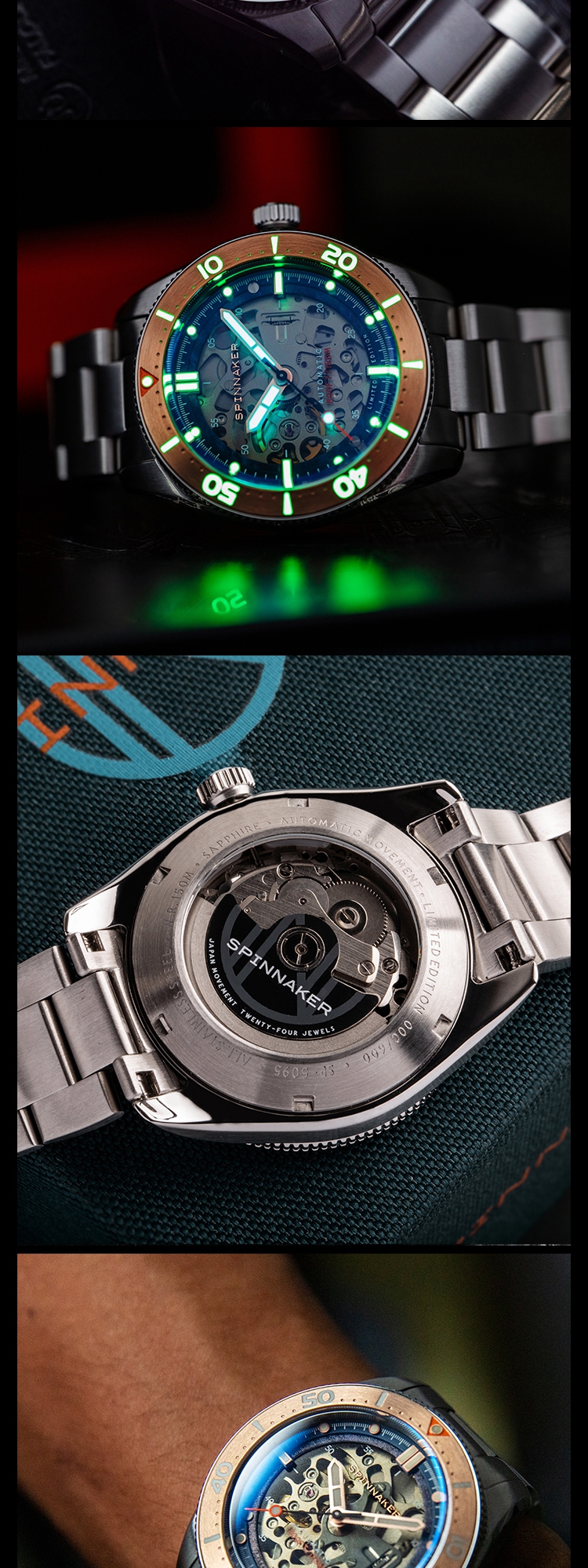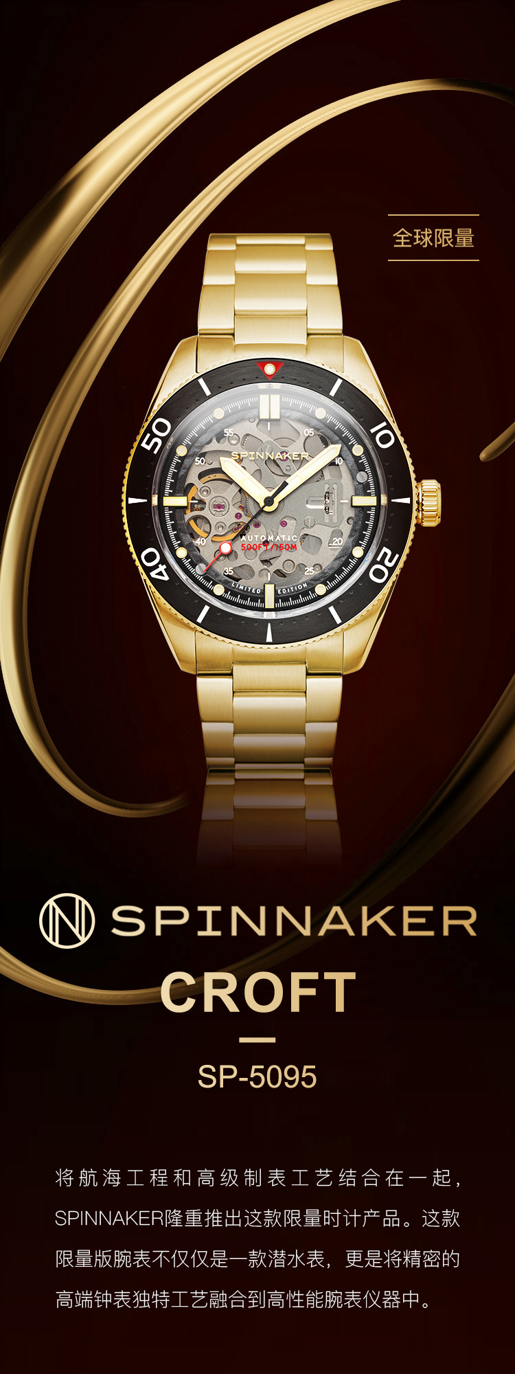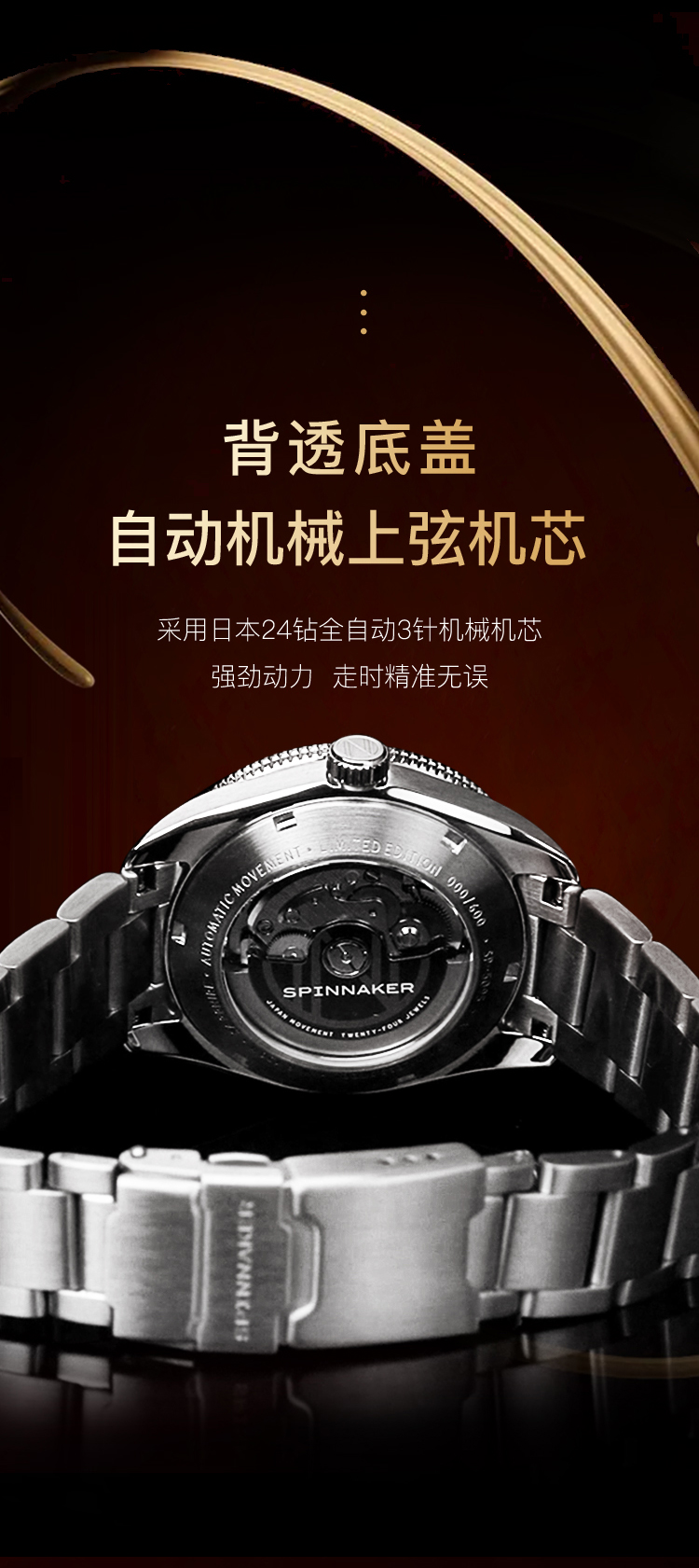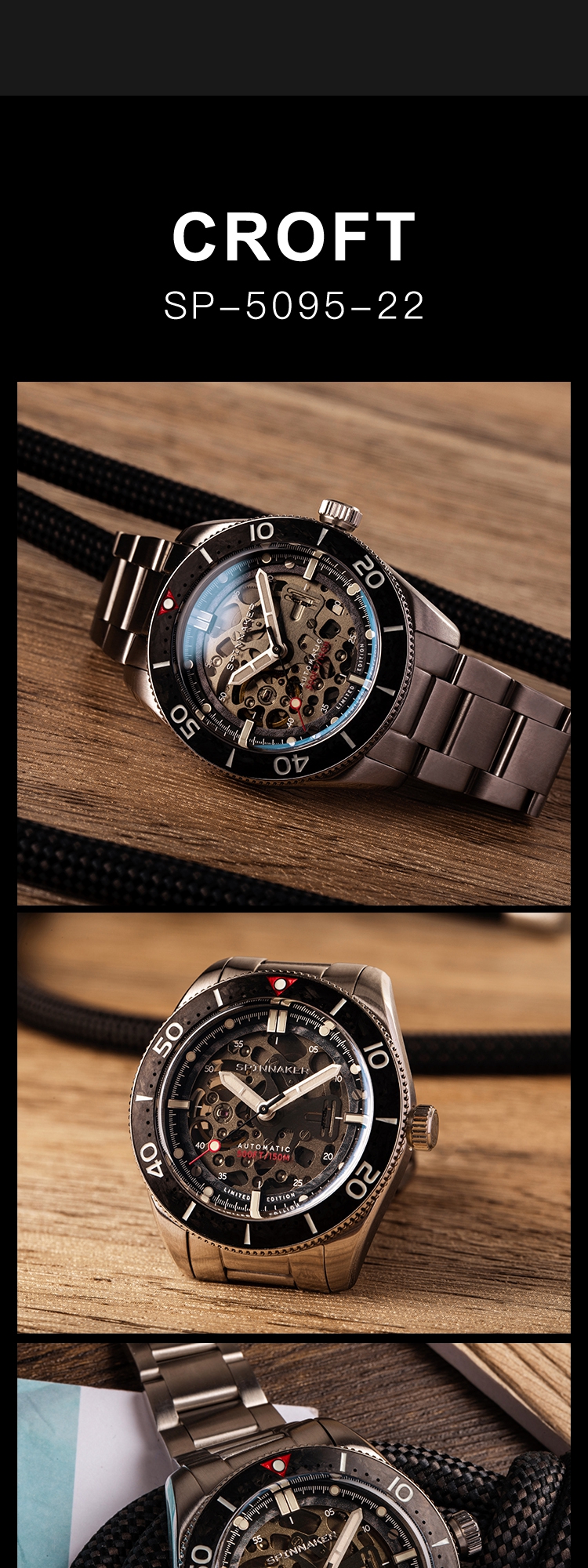 新款|英国SPINNAKER三角帆镂空自动机械表40毫米复古潜水夜光5095