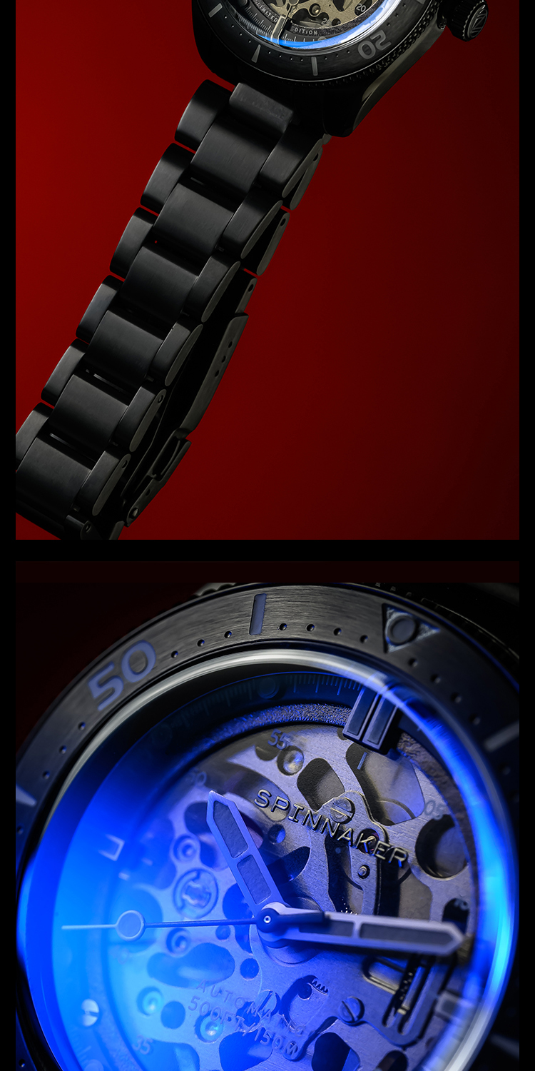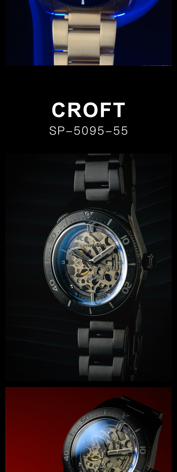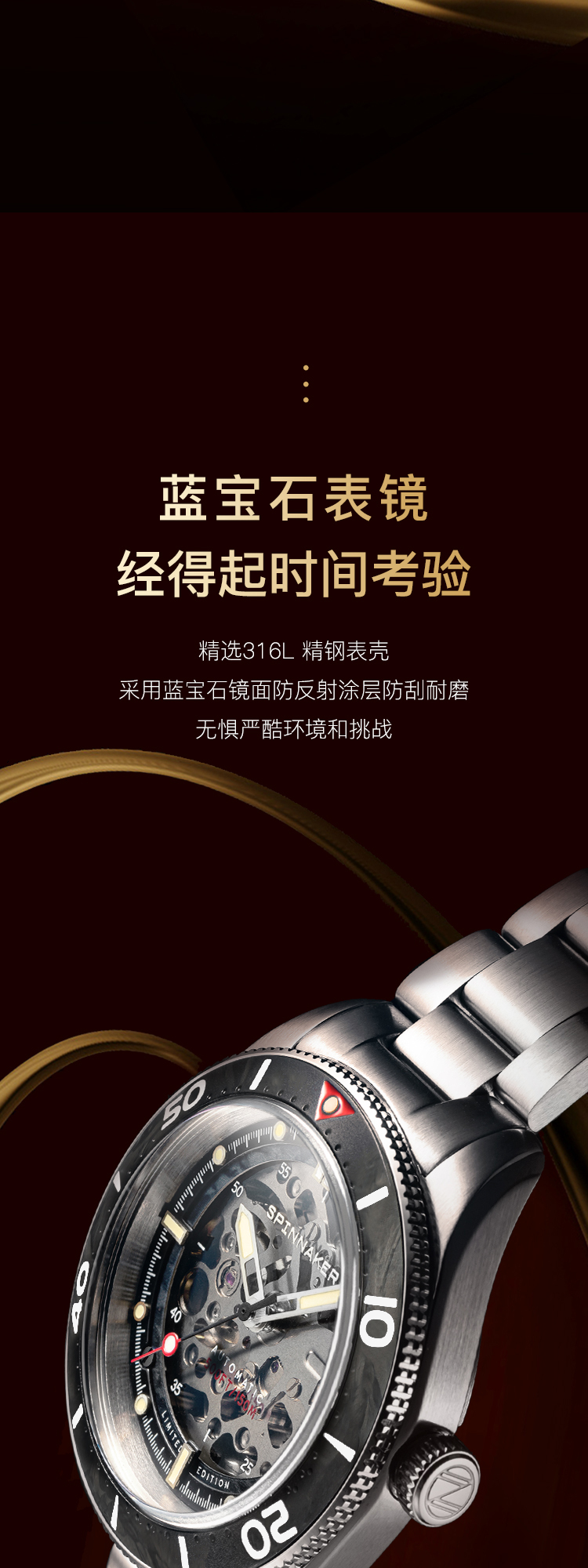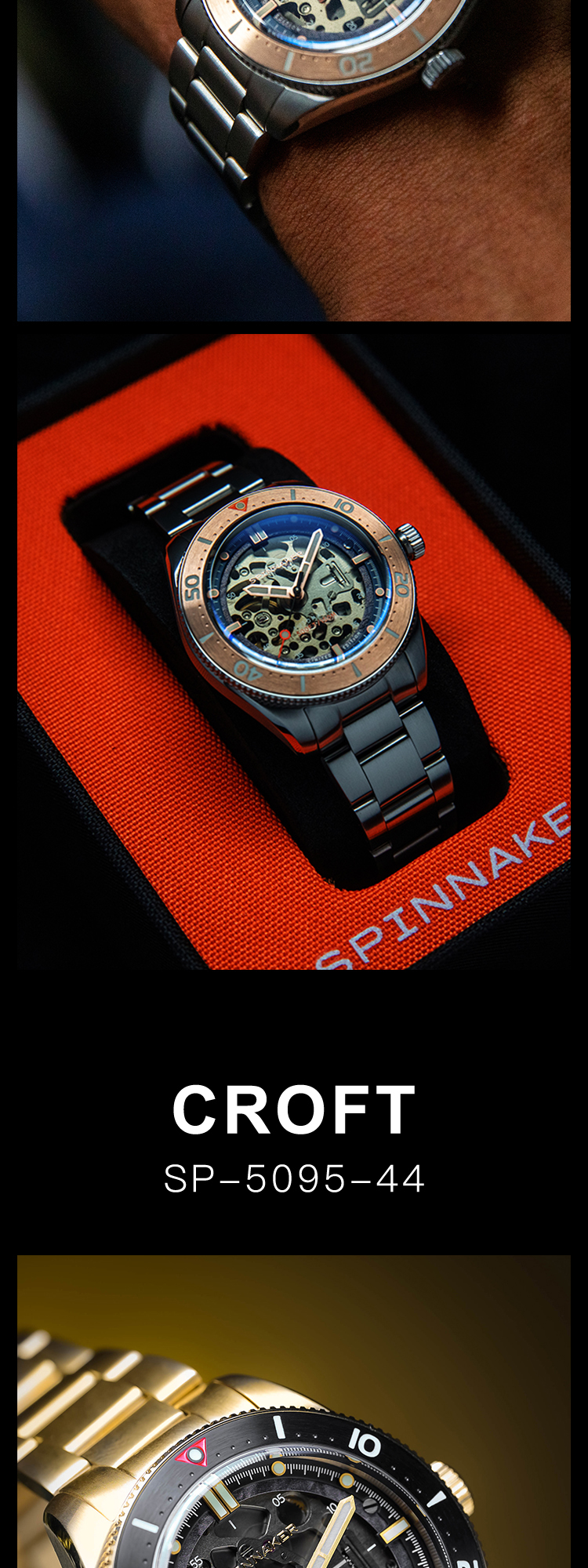 新款|英国SPINNAKER三角帆镂空自动机械表40毫米复古潜水夜光5095