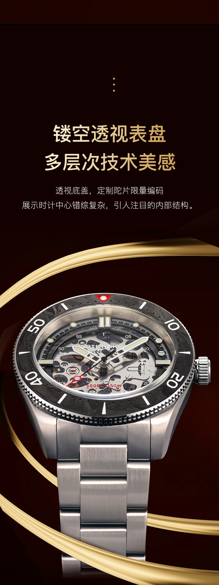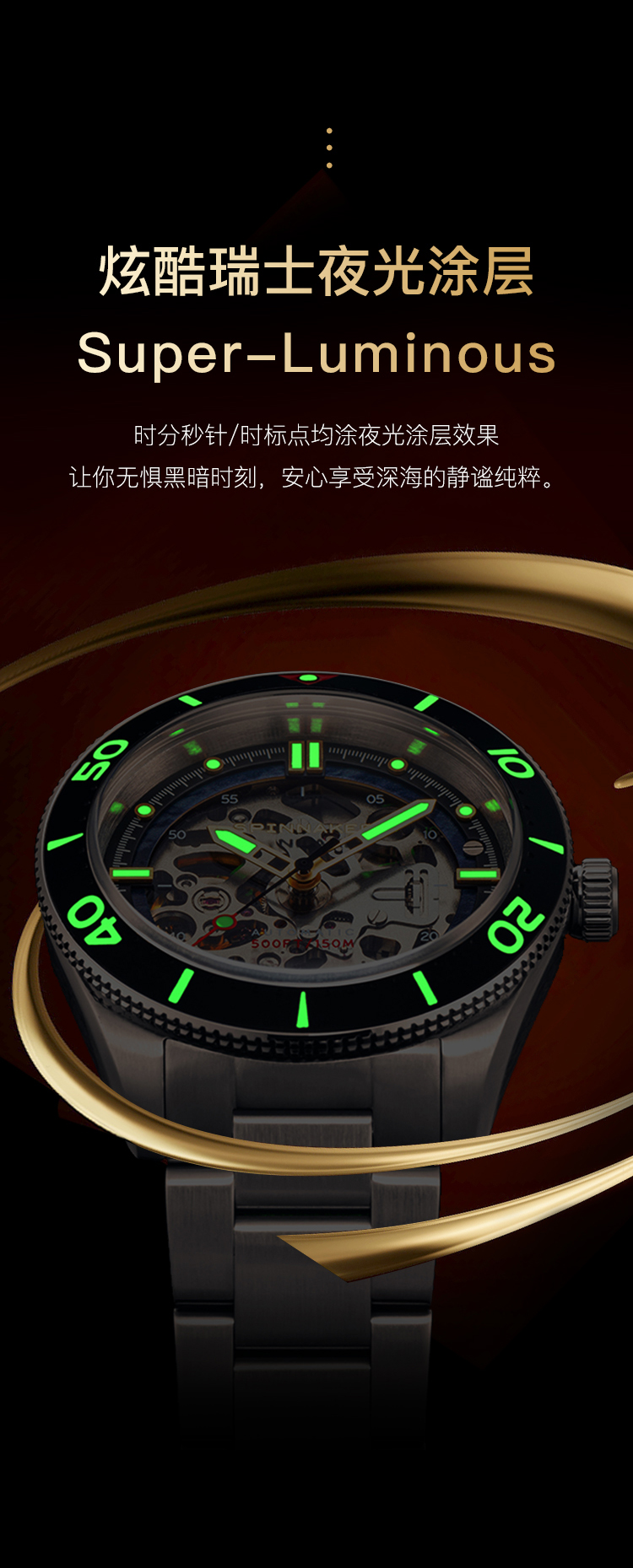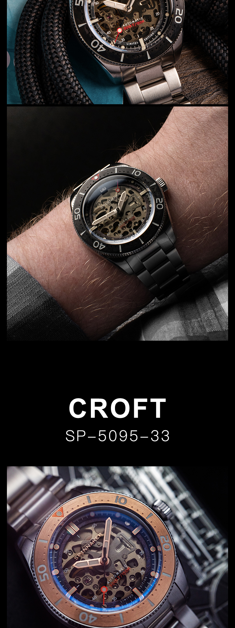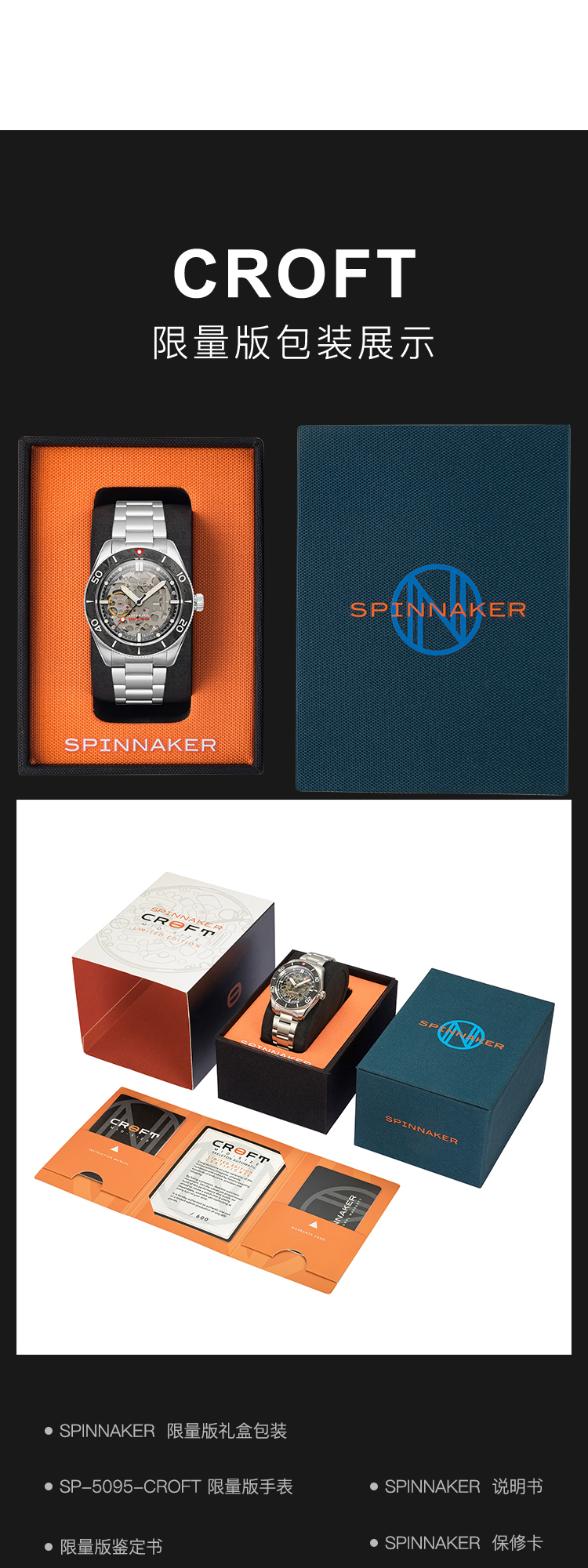 新款|英国SPINNAKER三角帆镂空自动机械表40毫米复古潜水夜光5095