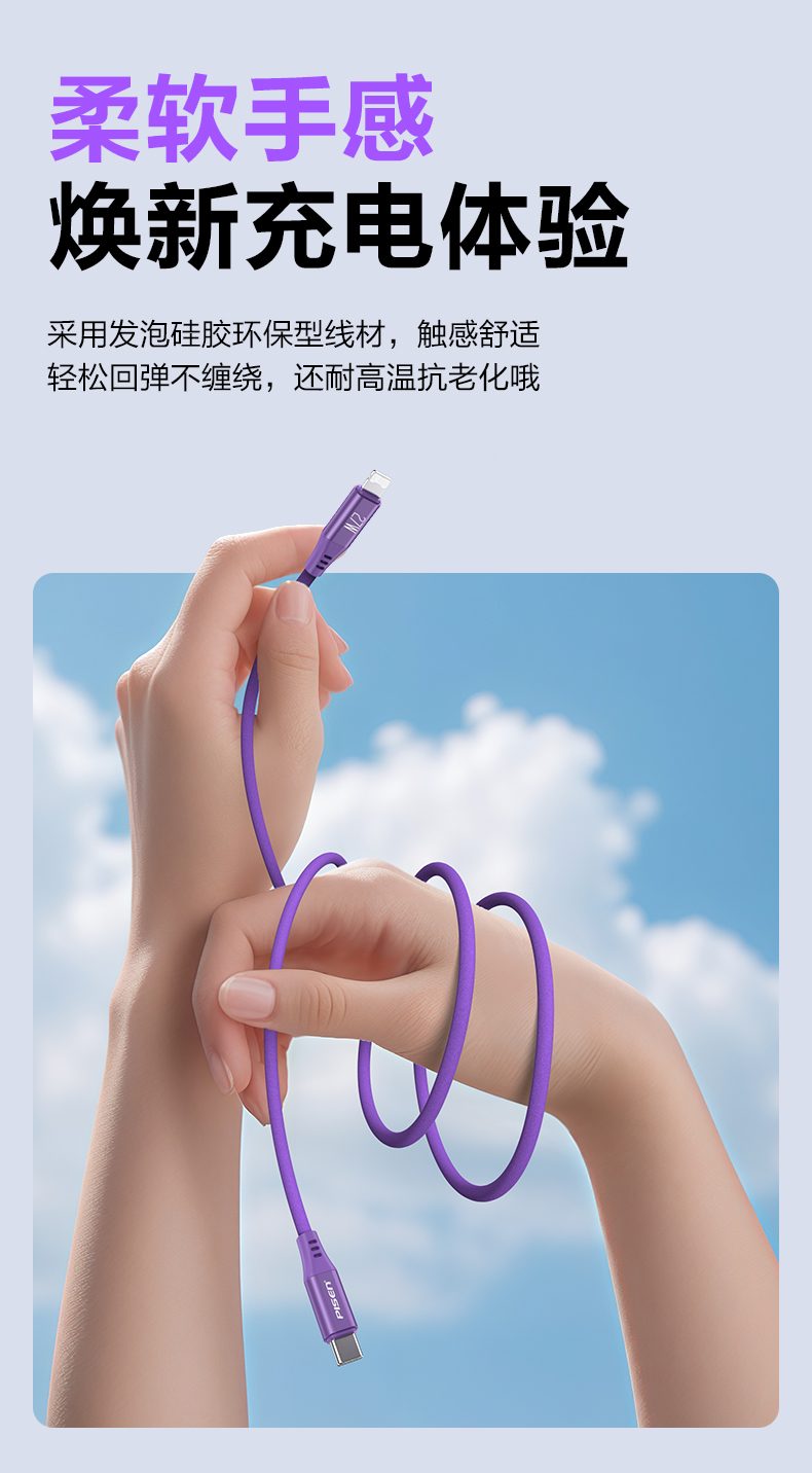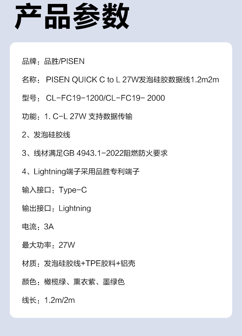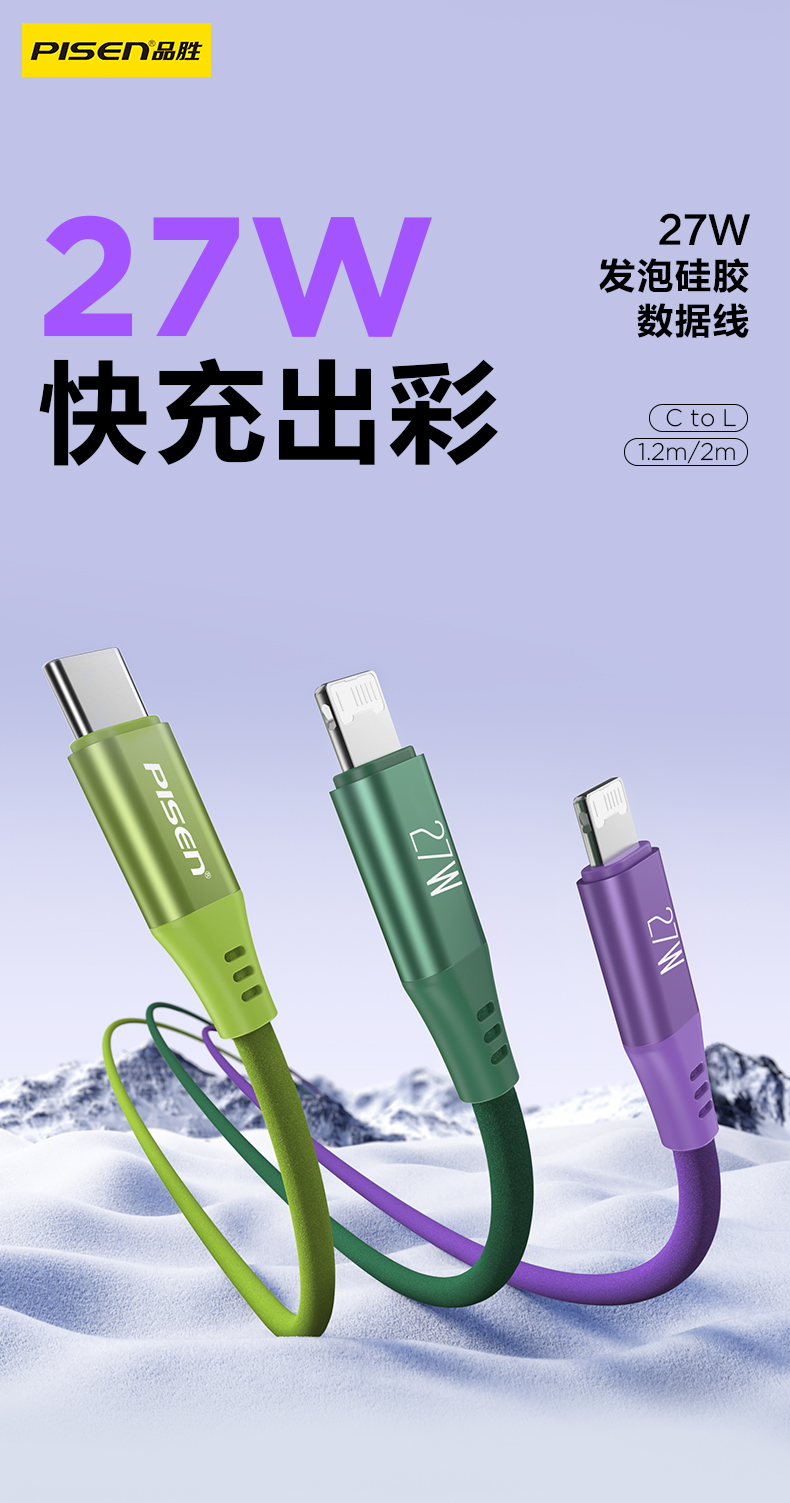 品胜 C to L 27W发泡硅胶数据线1.2米 支持苹果8—14设备/支持数据传输