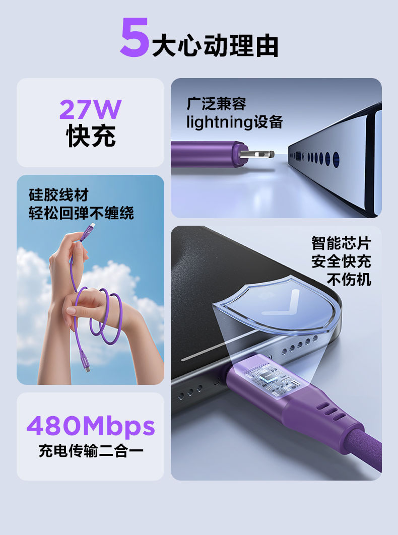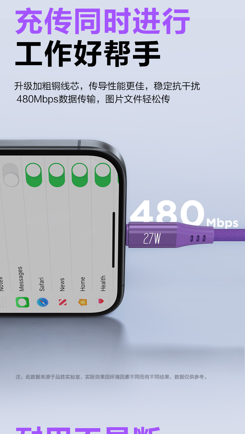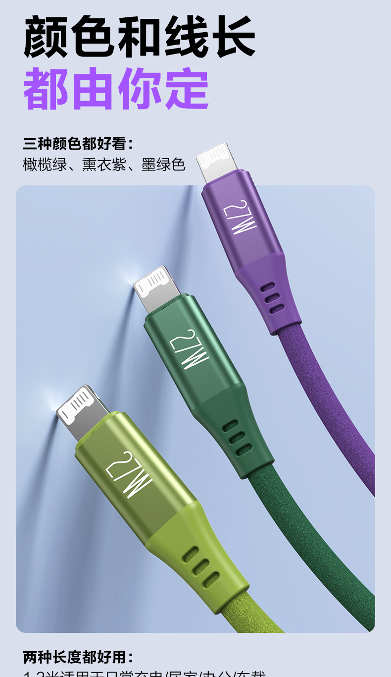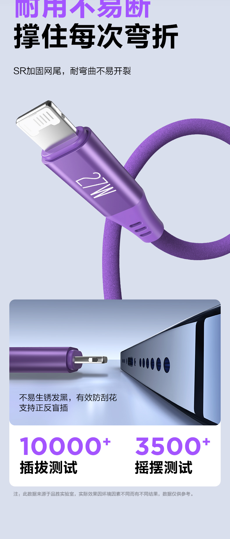 品胜 C to L 27W发泡硅胶数据线1.2米 支持苹果8—14设备/支持数据传输