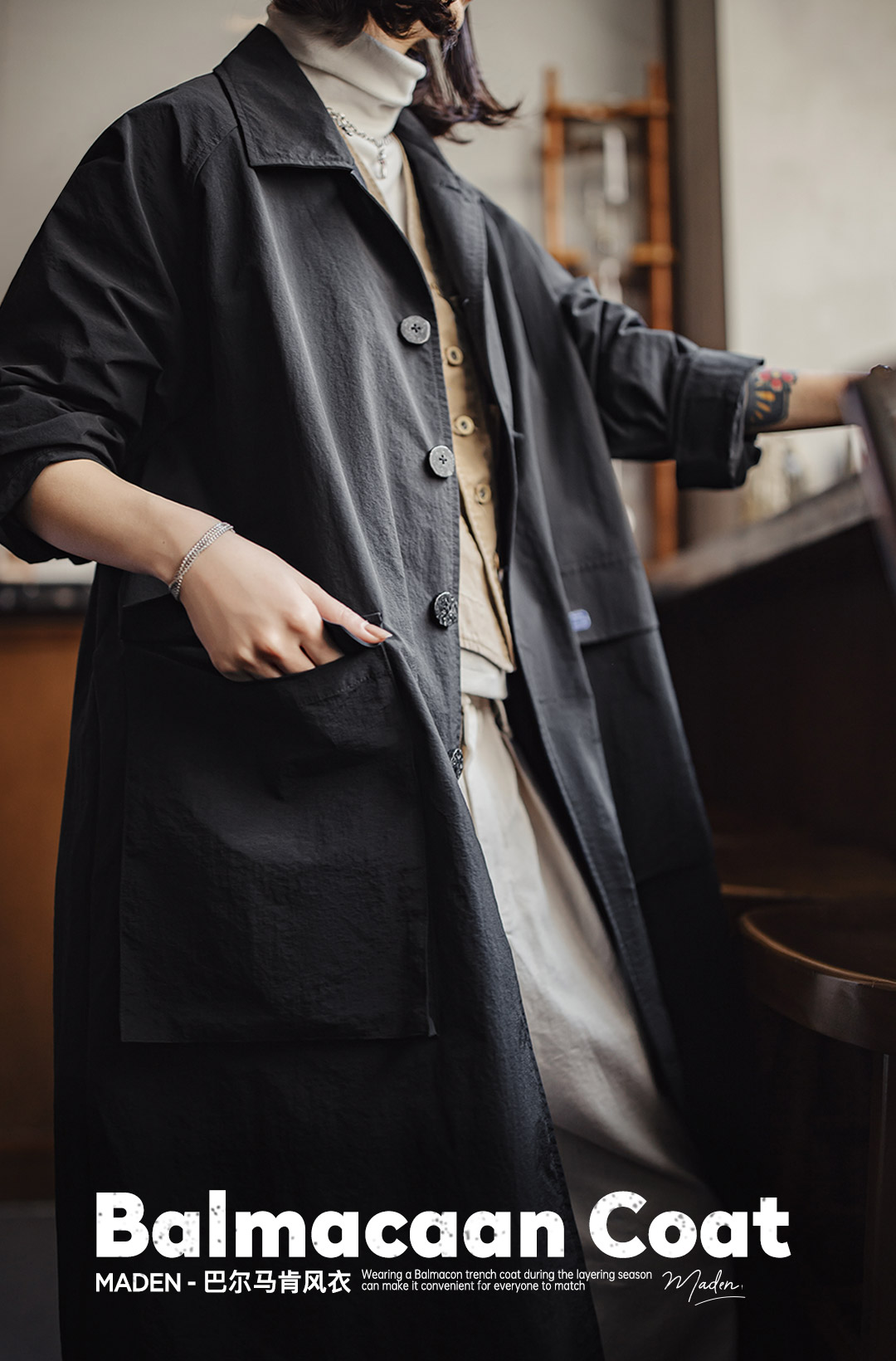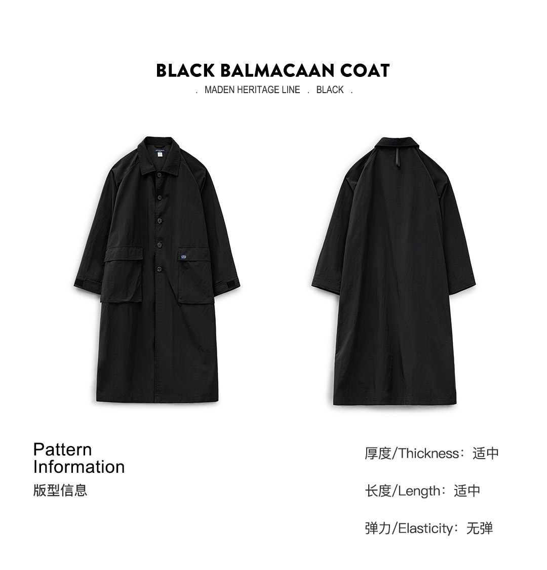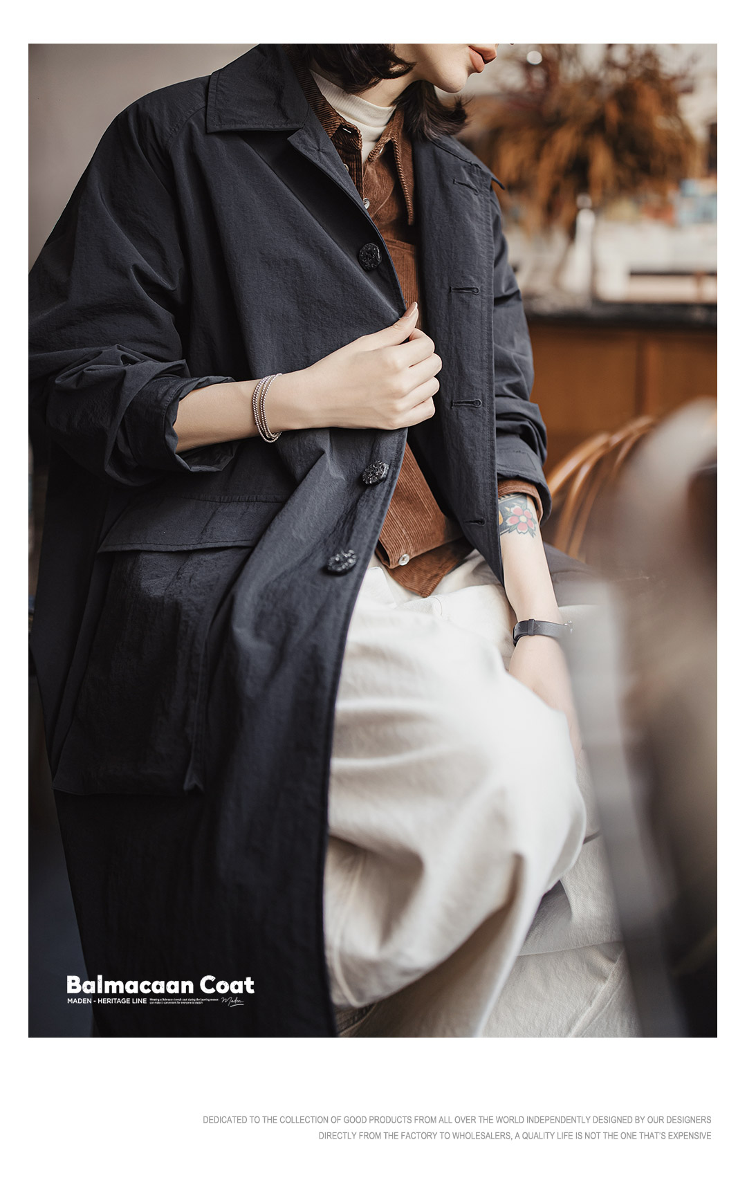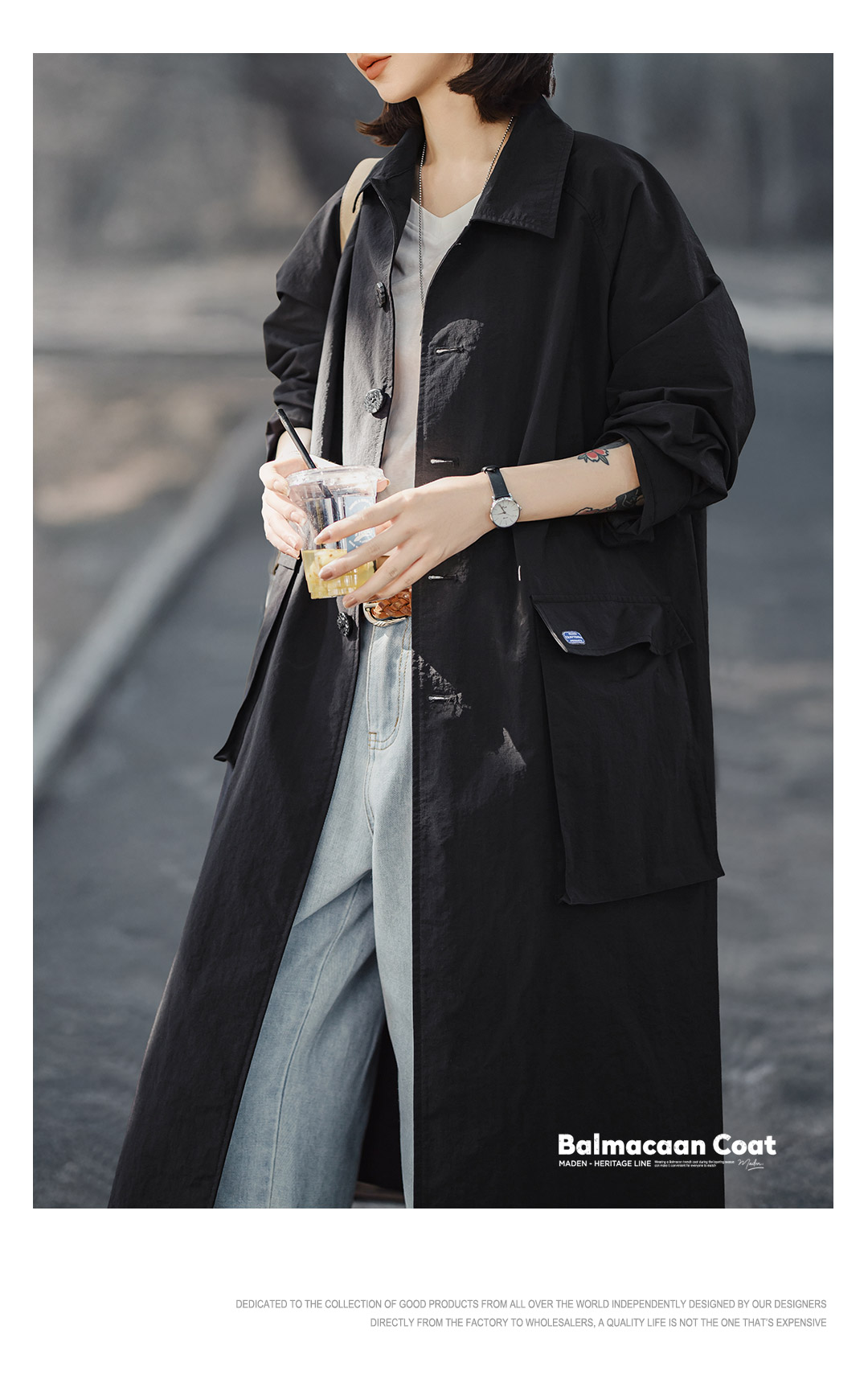 马登黑色翻领宽松中长薄款大衣高个子休闲工装风衣外套女士早秋季
