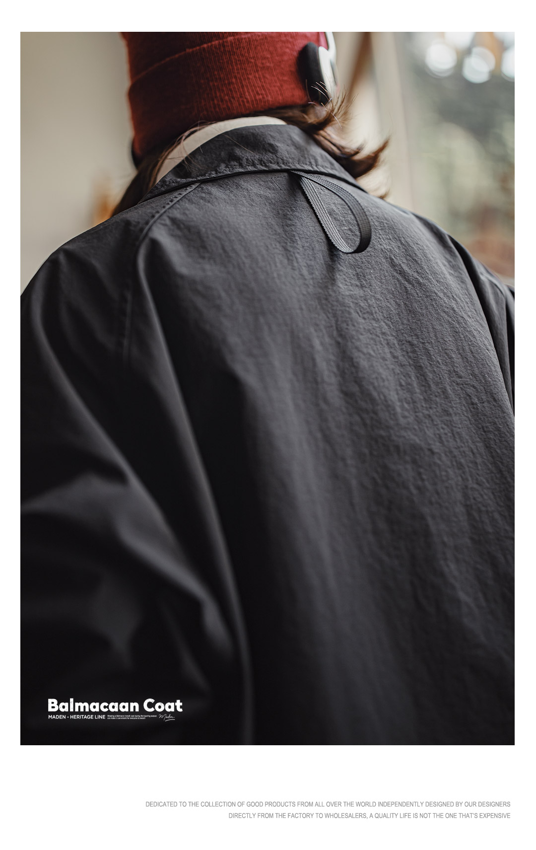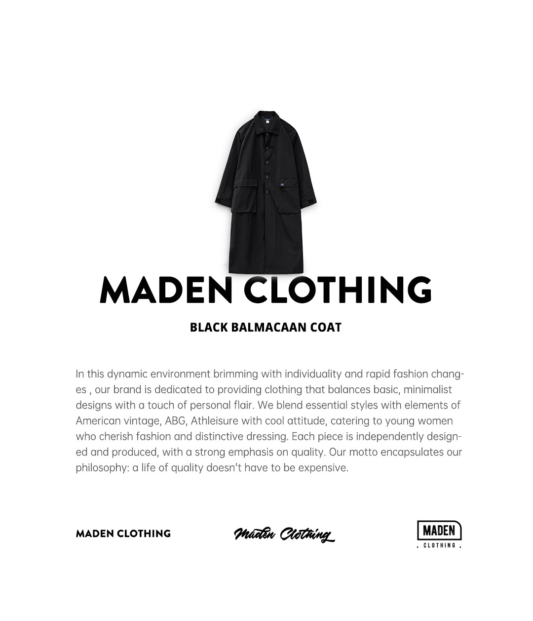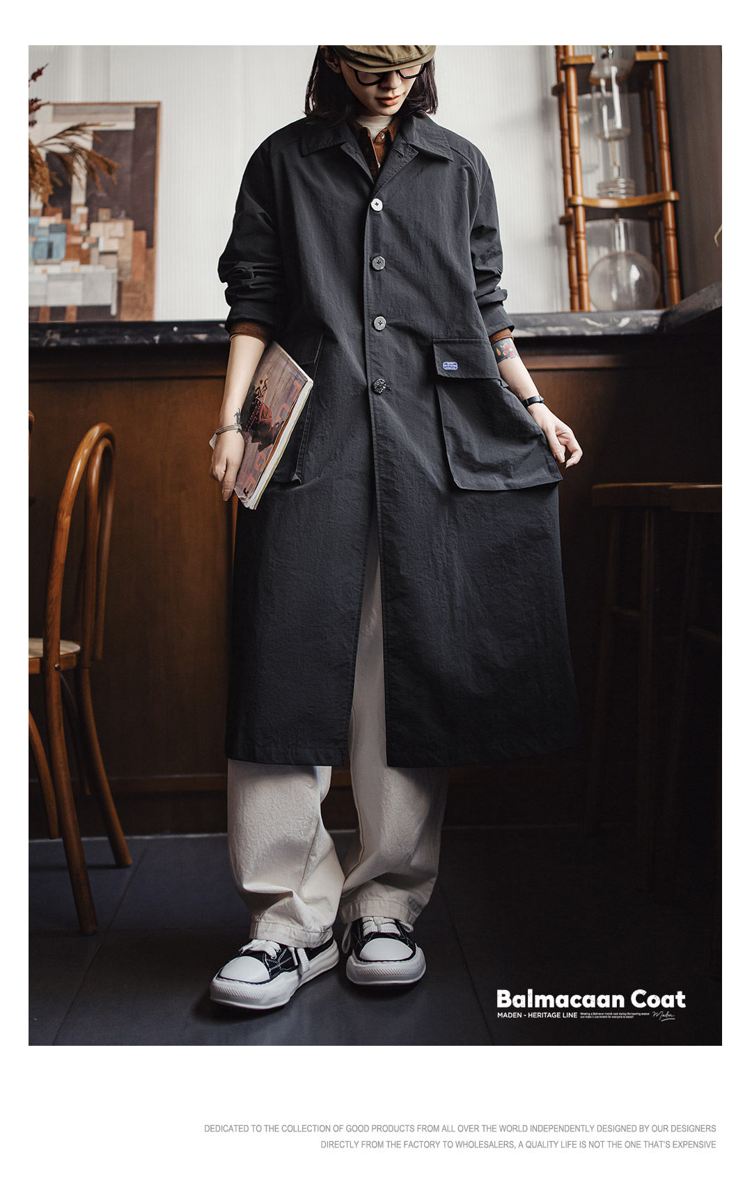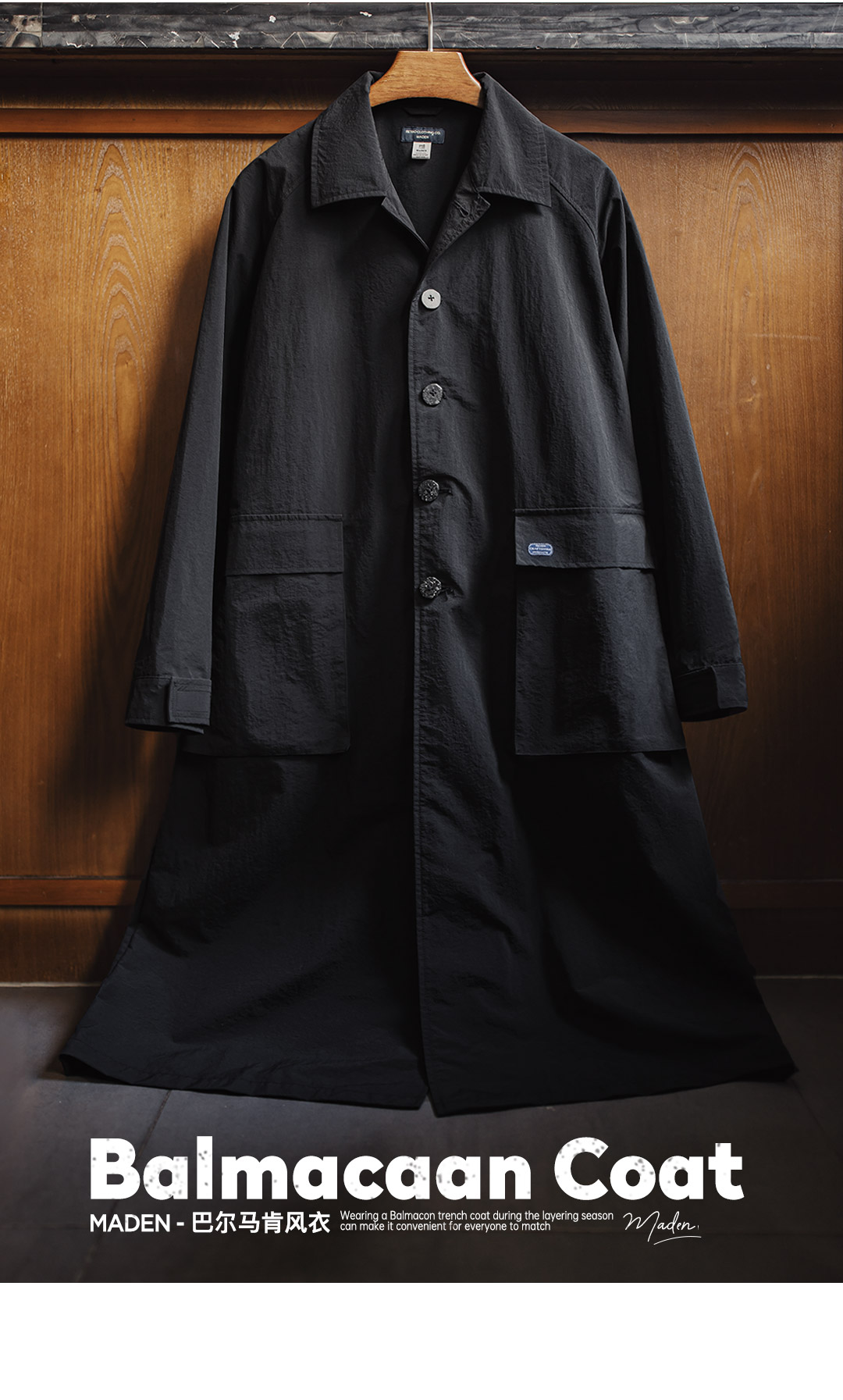 马登黑色翻领宽松中长薄款大衣高个子休闲工装风衣外套女士早秋季