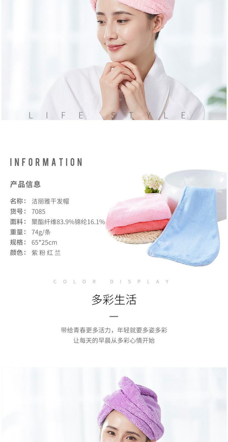 洁丽雅干发毛巾帽柔软吸水擦头发包头巾浴帽7085 65*25随机
