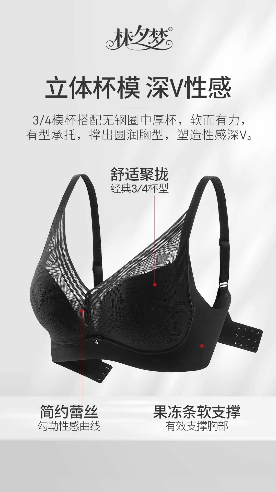 【梦之柔文胸】果冻条软支撑 挺拔不下垂 蚕丝蛋白 柔润亲肤 立体杯模 深V聚拢 简约蕾丝 勾勒性感 裸感无痕 亲肤舒适_2303