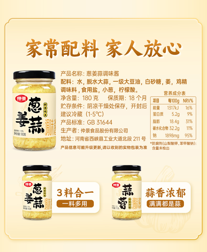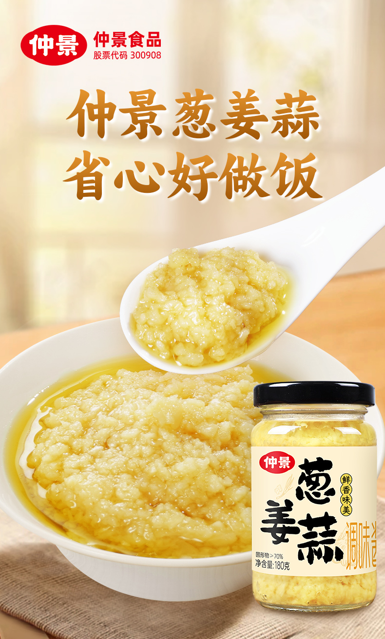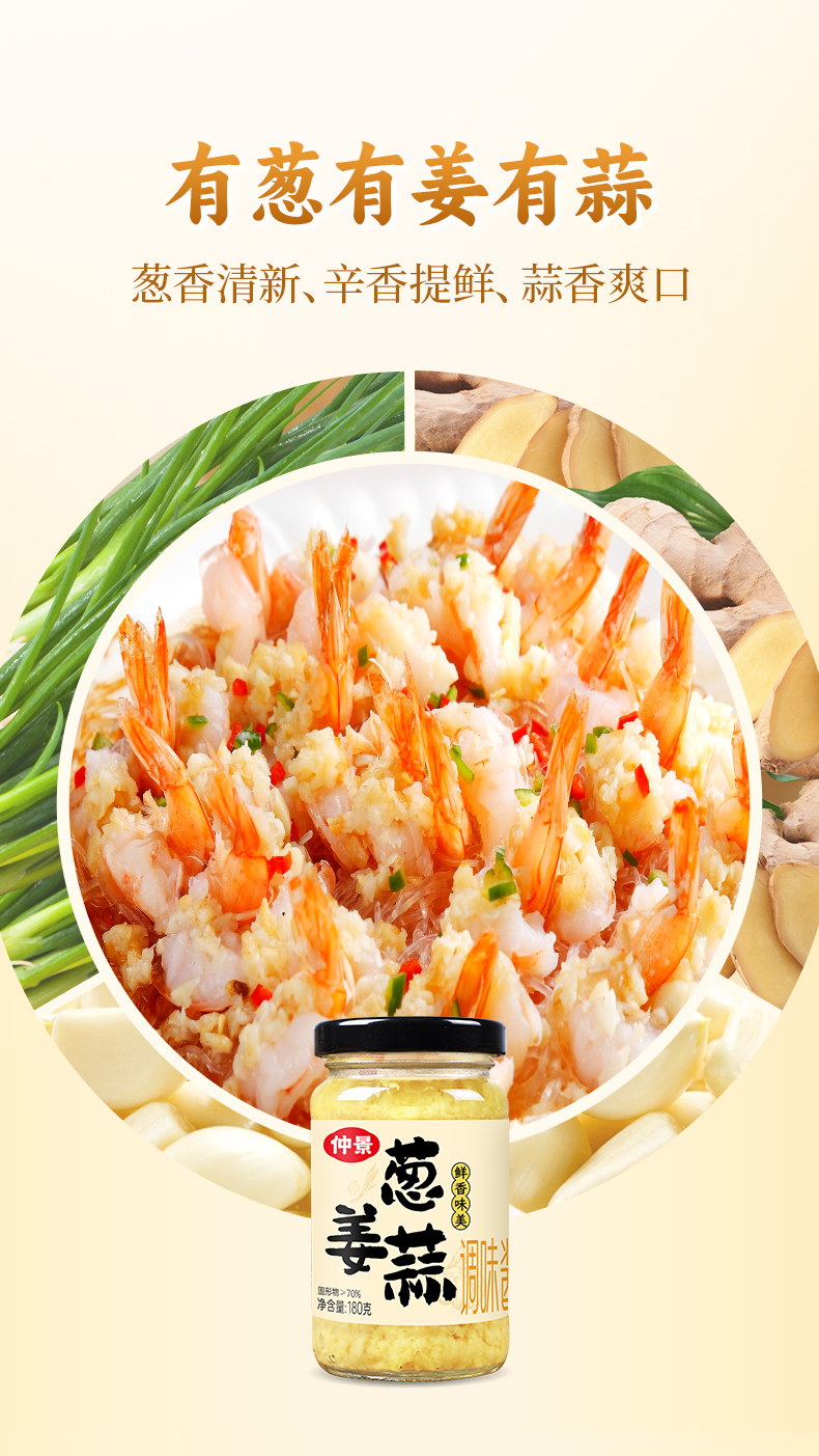 【0添加防腐剂】仲景葱姜蒜蓉酱鲜香蒜泥调料 生蚝海鲜烧烤火锅蘸料180g240g