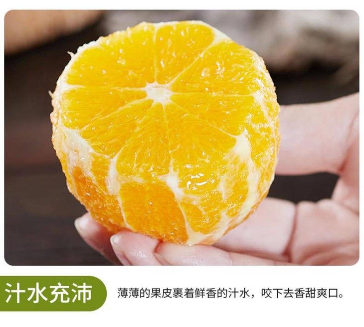 饮着长江水长大的橙子,生长周期长达12个月,糖分积累更多,因而比普通脐橙更多汁、更鲜甜、更细嫩!轻咬一口,汁水一下就从薄薄的瓣膜中流出,像是在喝橙汁一样,充盈着满满的阳光的滋味。