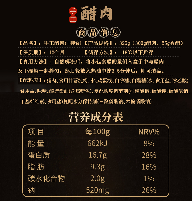 闽南醋肉酒店半成品食材(300g醋肉、25g香醋)