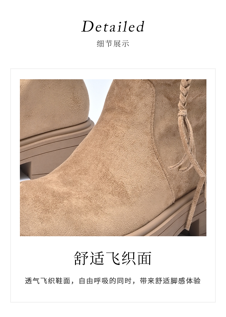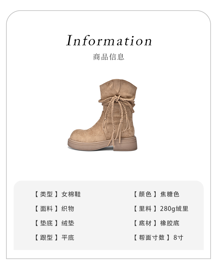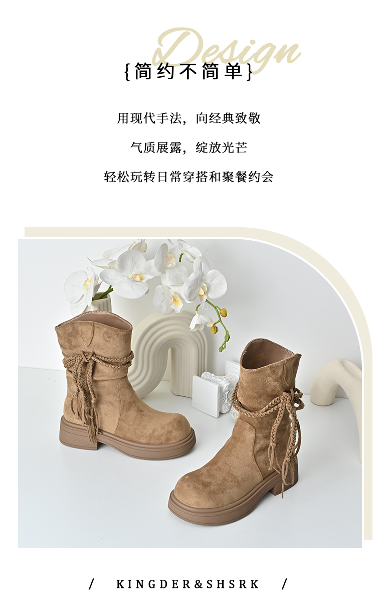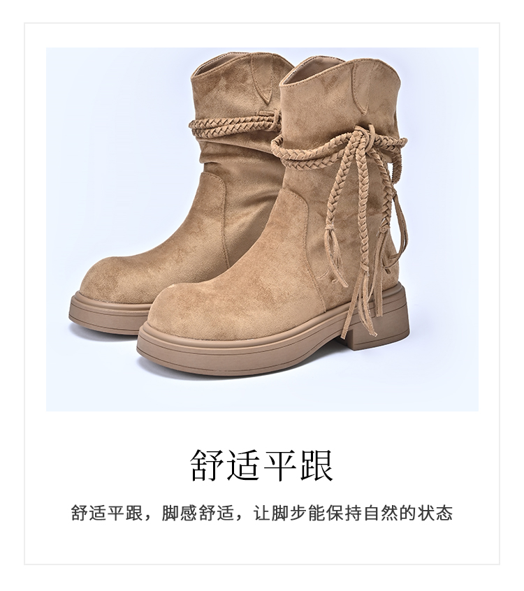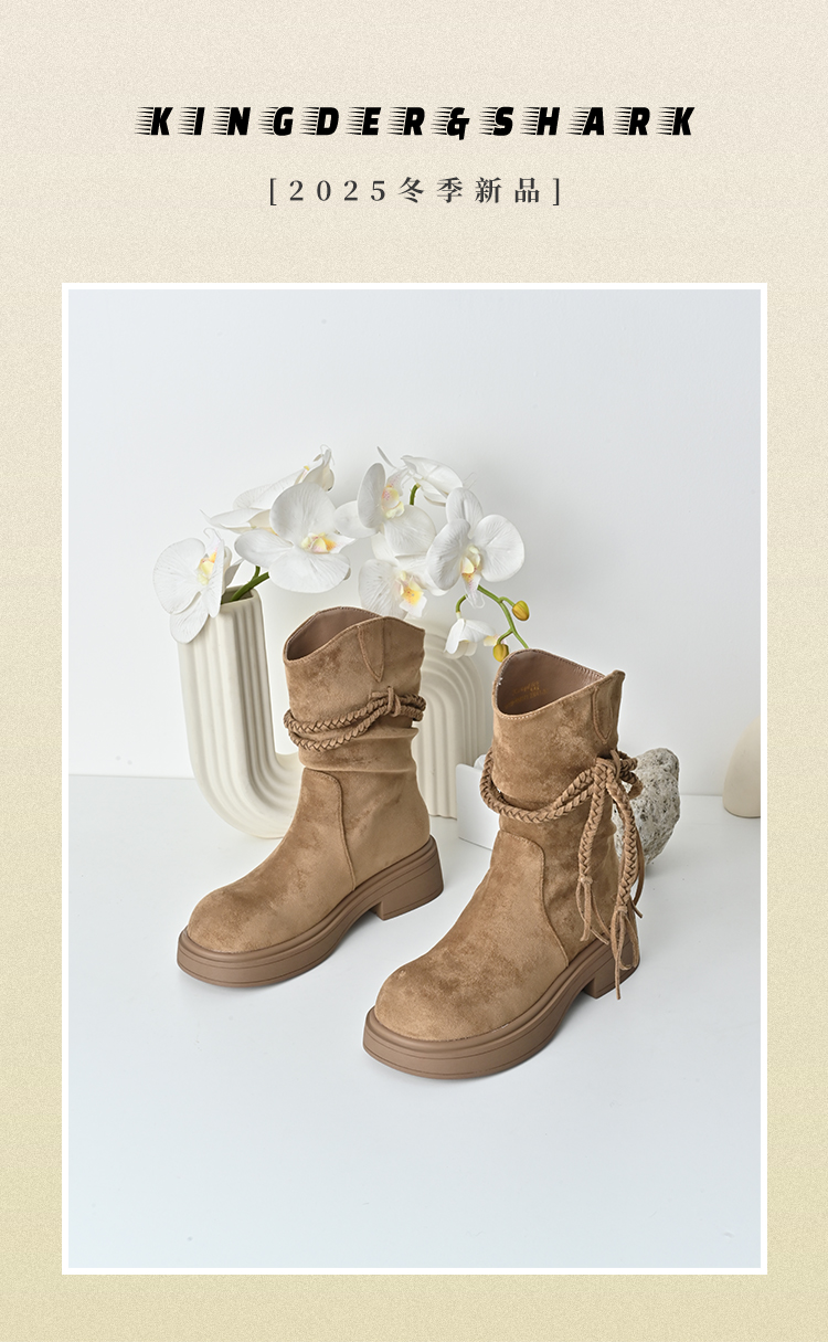 经典鲨2025年专柜新品百搭圆头复古加绒保暖平底套筒短靴女KW119-558171