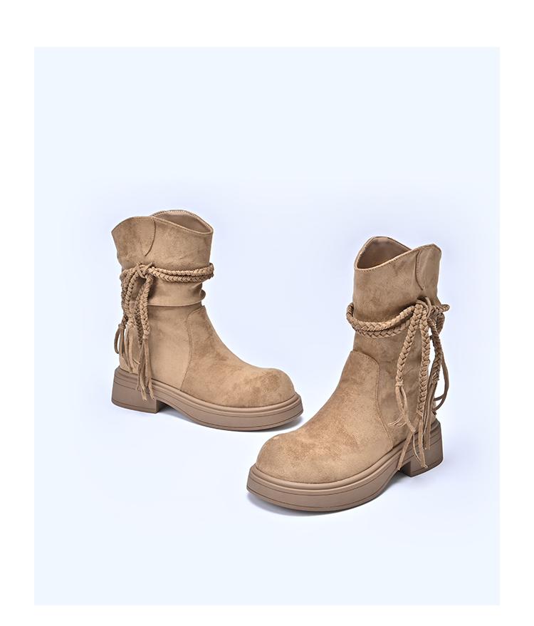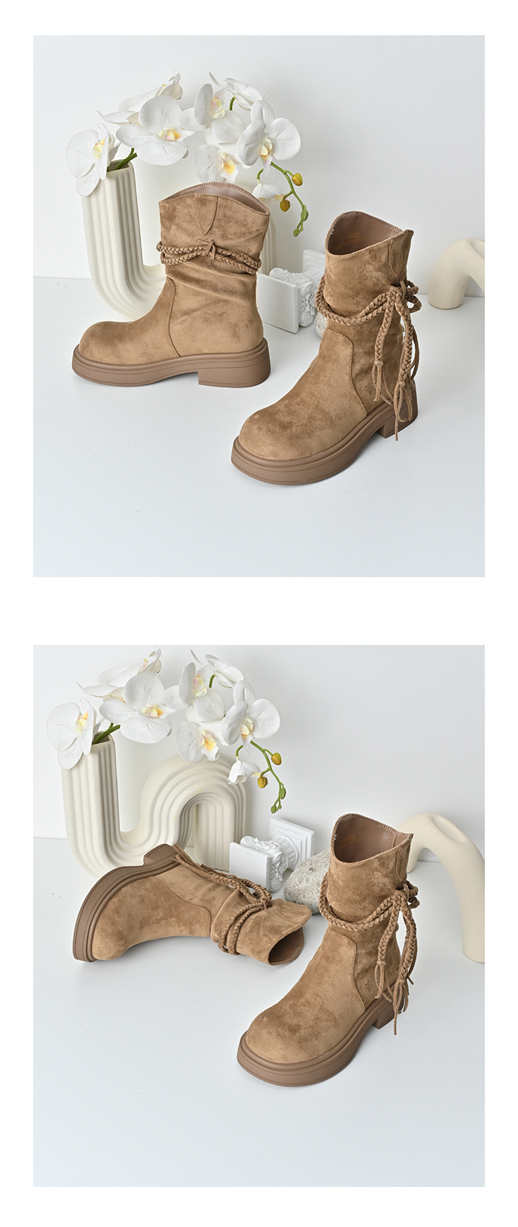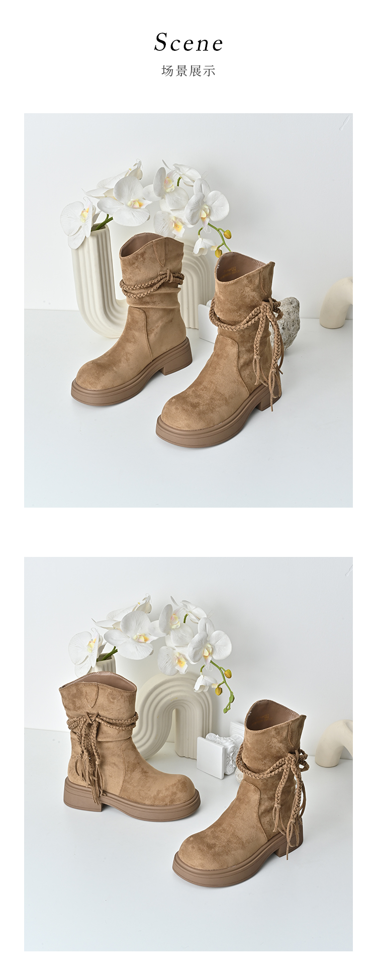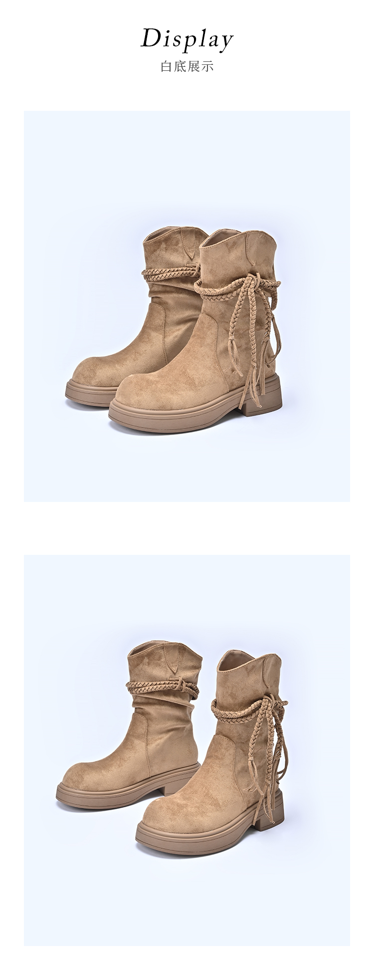 经典鲨2025年专柜新品百搭圆头复古加绒保暖平底套筒短靴女KW119-558171