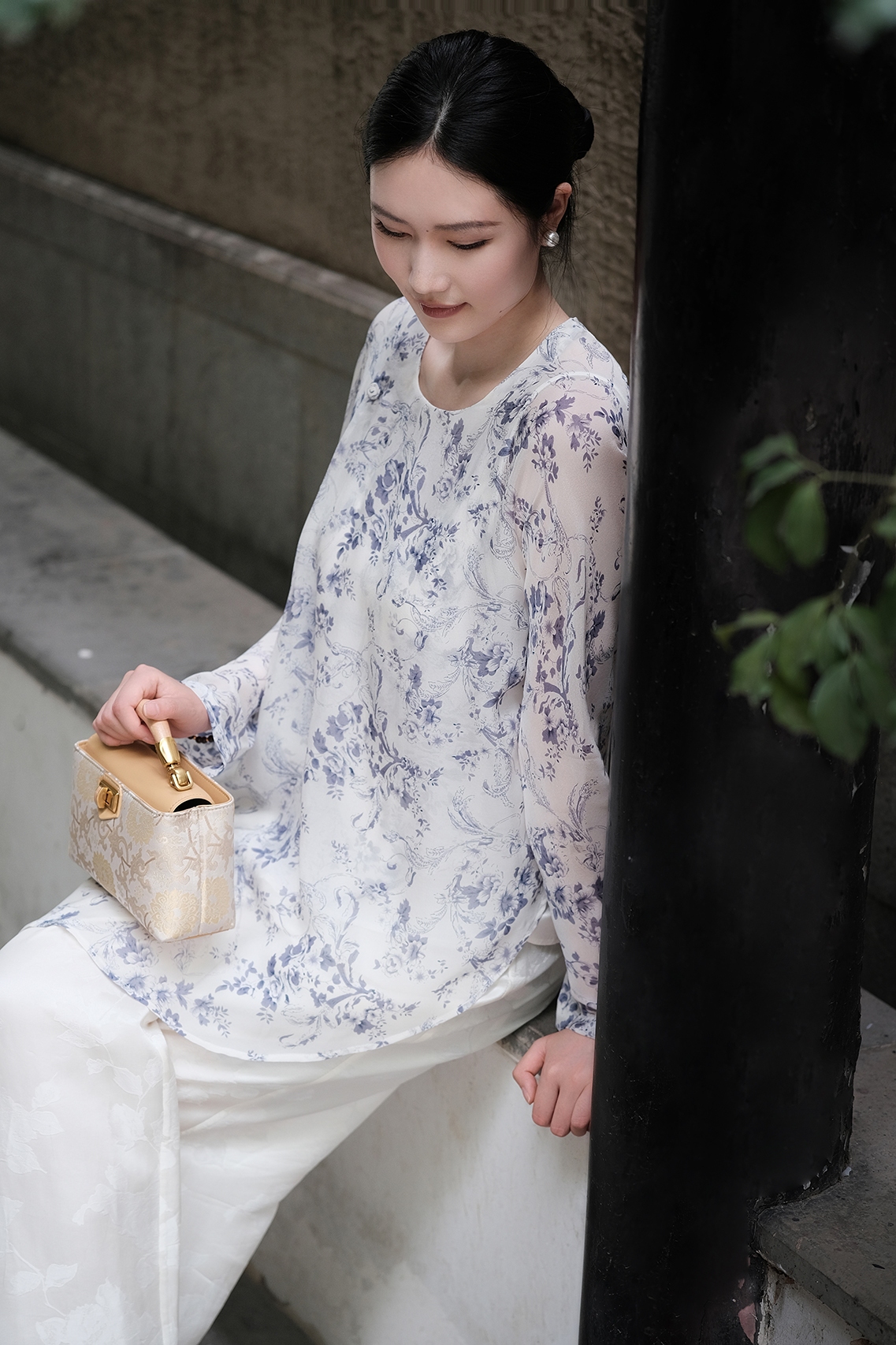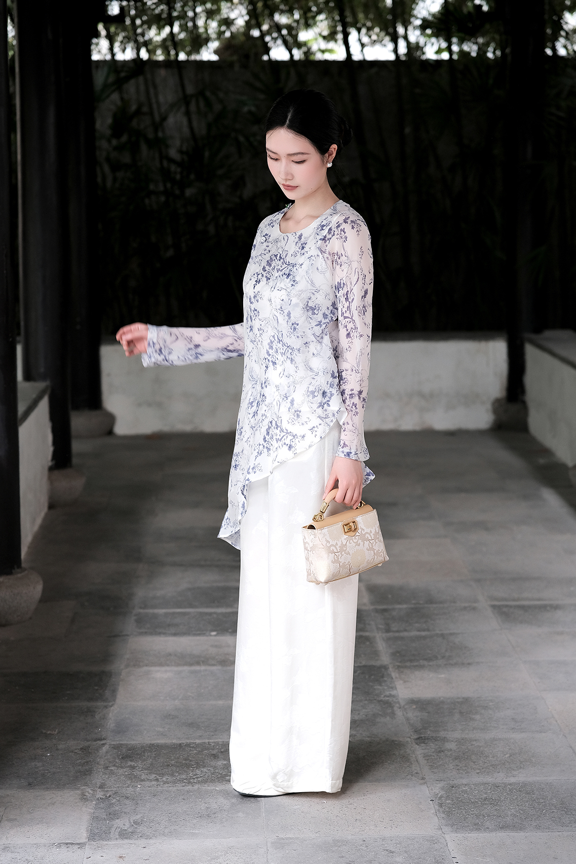 盛唐牡丹| 珍珠白真丝竹子纹偏襟上衣