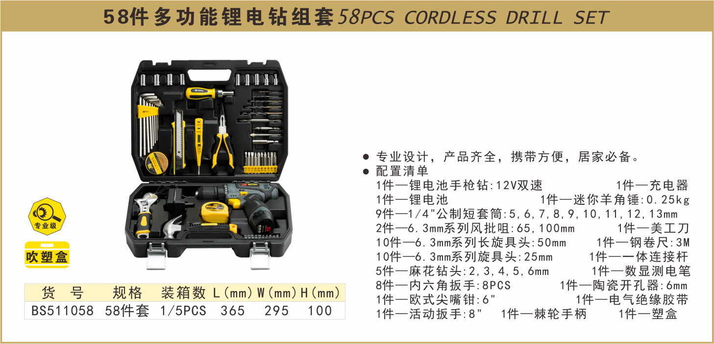 波斯 58件多功能锂电钻组套 58PC BS511058