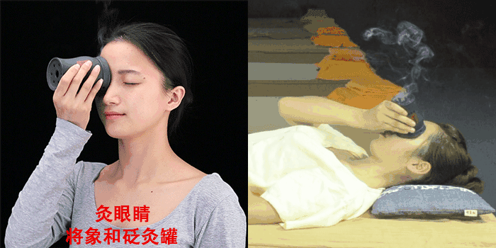 平躺在沙发上,将罐直接扣在眼睛上;在左右眼之间移动着施灸各10分钟。