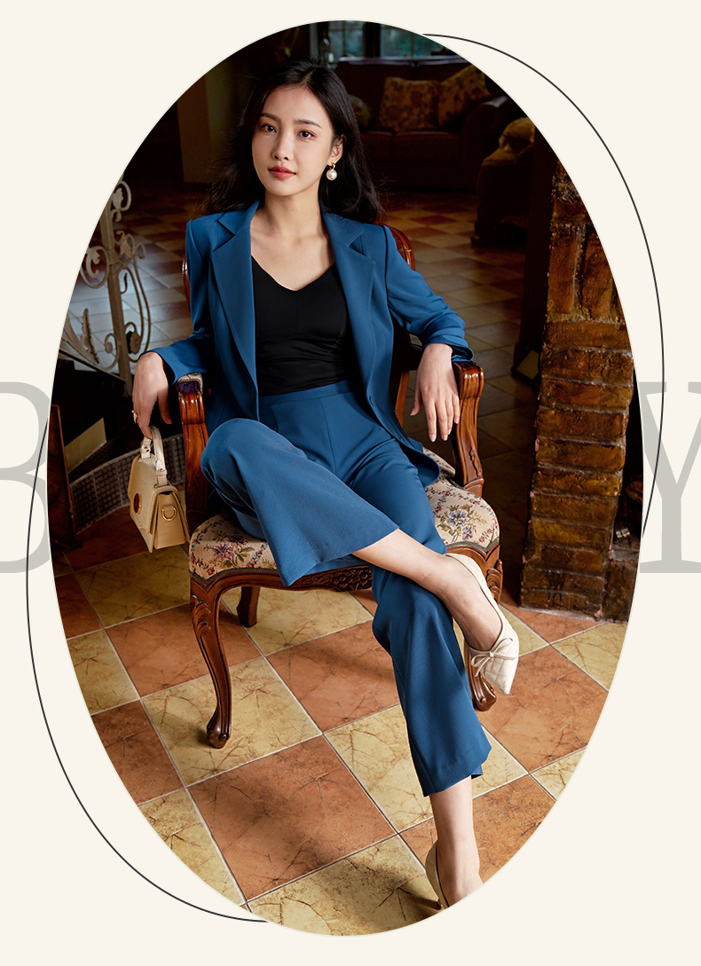 逸红颜语梦2025春季新款休闲裤摩洛哥蓝时尚都市休闲裤垂感显瘦【视频号】