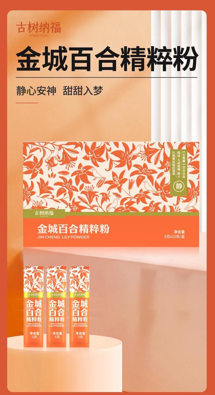 百合精粹粉来自古树纳福,一个致力于做东方美学产品的品牌,专注于高效的健康养生方式,借助自然本草的愈疗力量,通过现代萃取技术将自然草本提炼成“药食同源”0添加天然的纯净好物,做天然健康滋养堂。