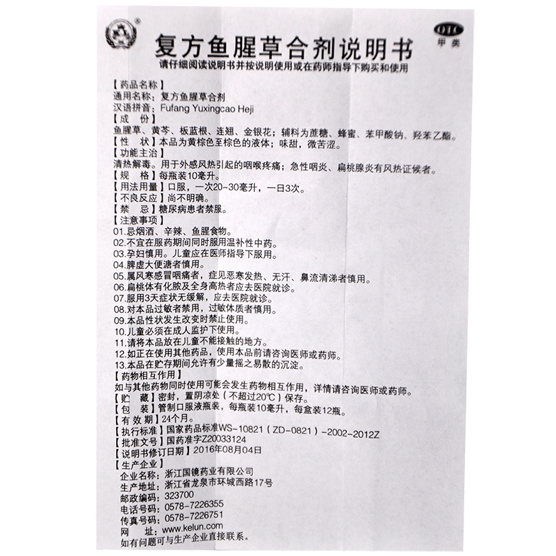 国镜 复方鱼腥草合剂 10ml*12瓶/盒清热解毒喉咙疼痛急性咽炎
