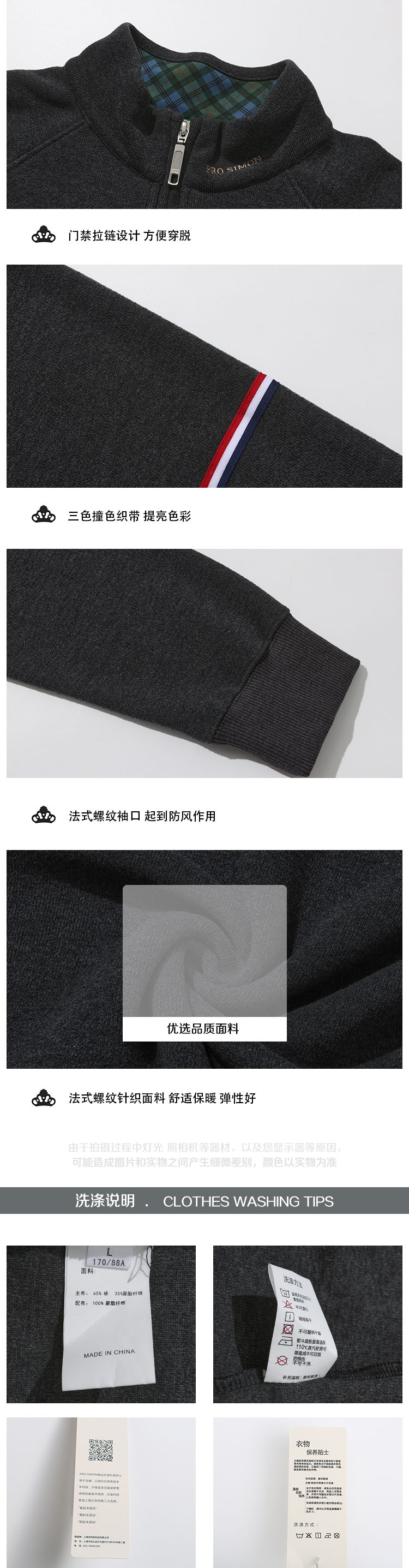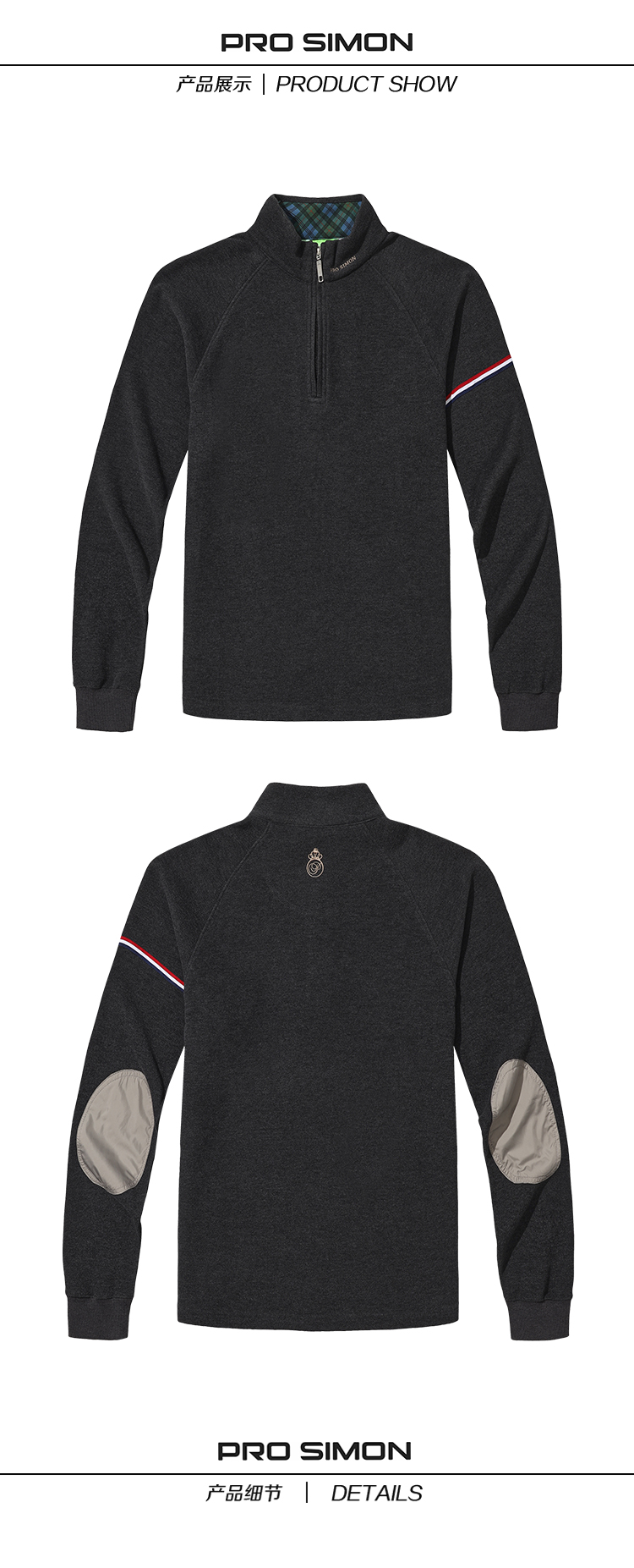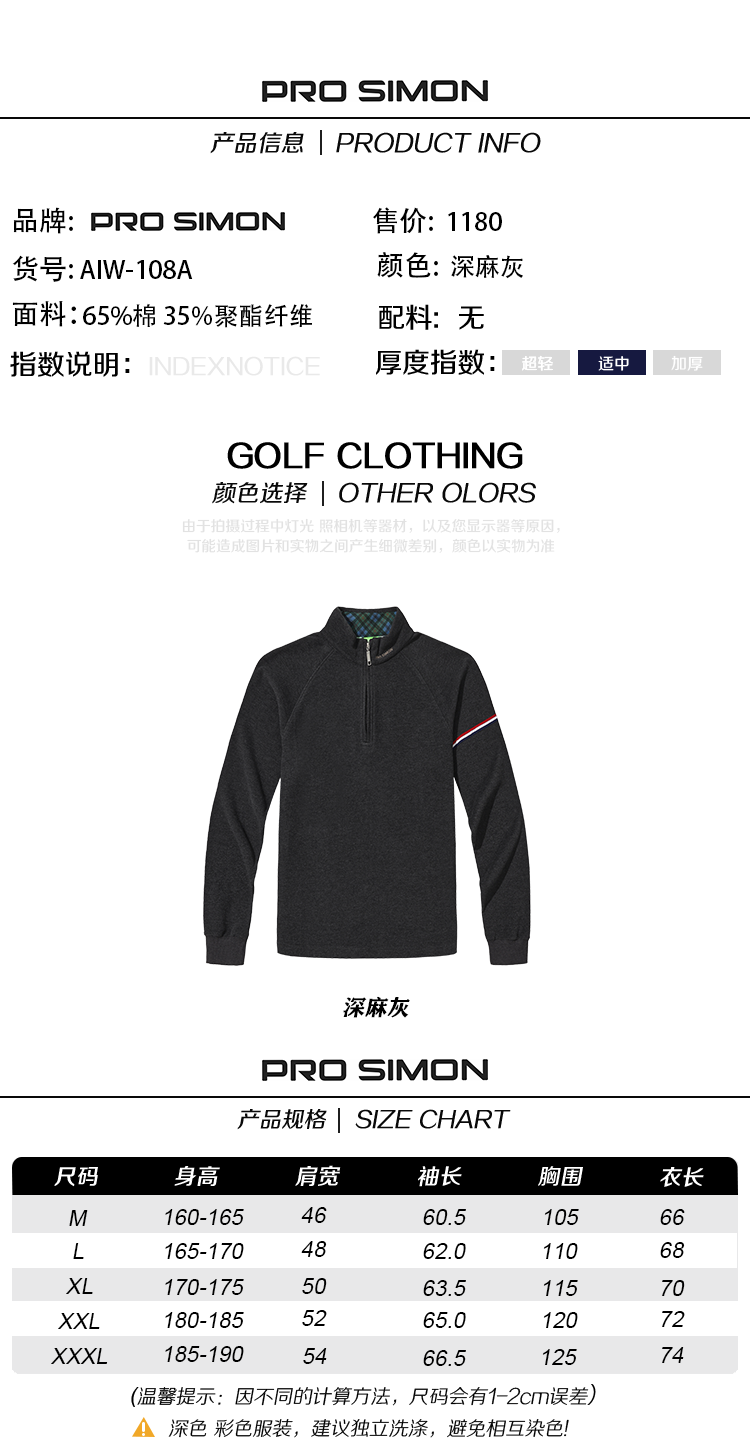 AIW108A PROSIMON高尔夫男款简约风立领长袖拉链套头衫