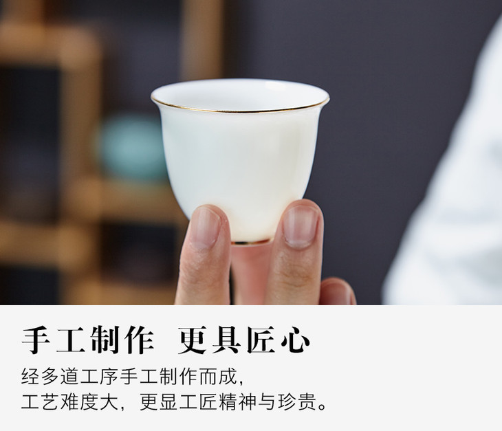 尚置丨描金羊脂白玉瓷茶具套组 (盖碗*1,品茗杯*6,公道杯*1,茶漏*1)礼盒装 三款可选