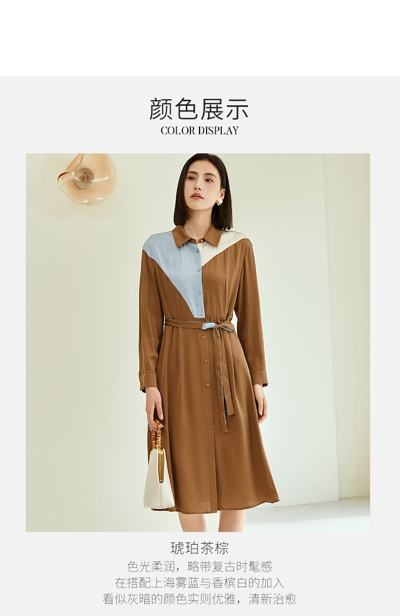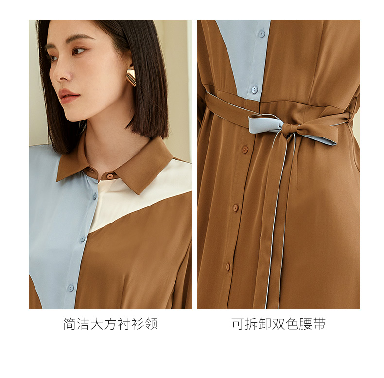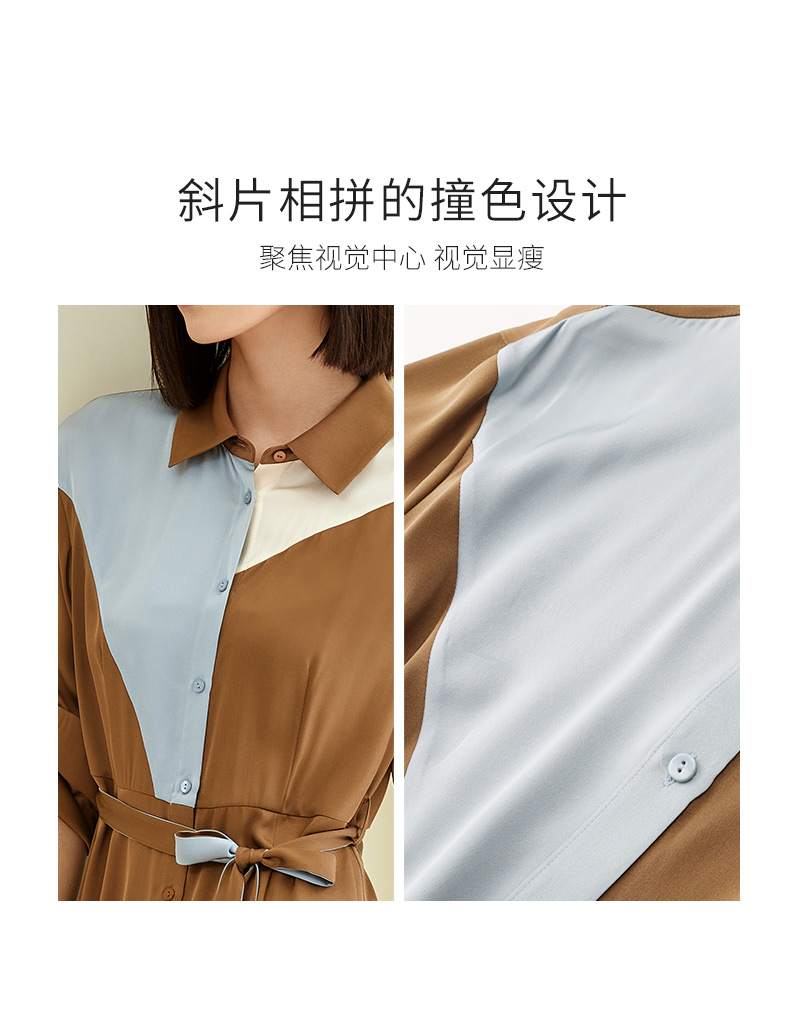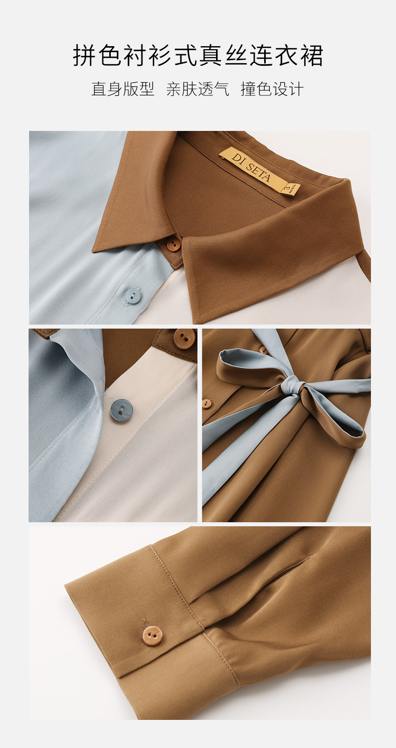 玳莎拼色复古真丝衬衫裙秋季新款中长款气质收腰高级感连衣裙 DC35301