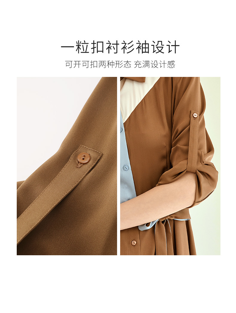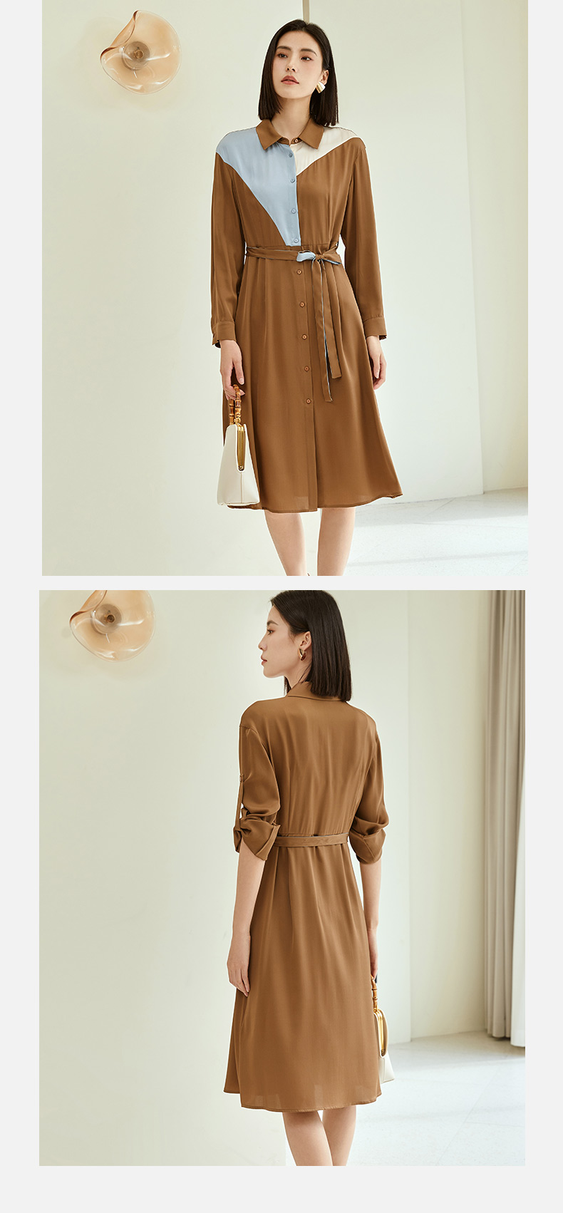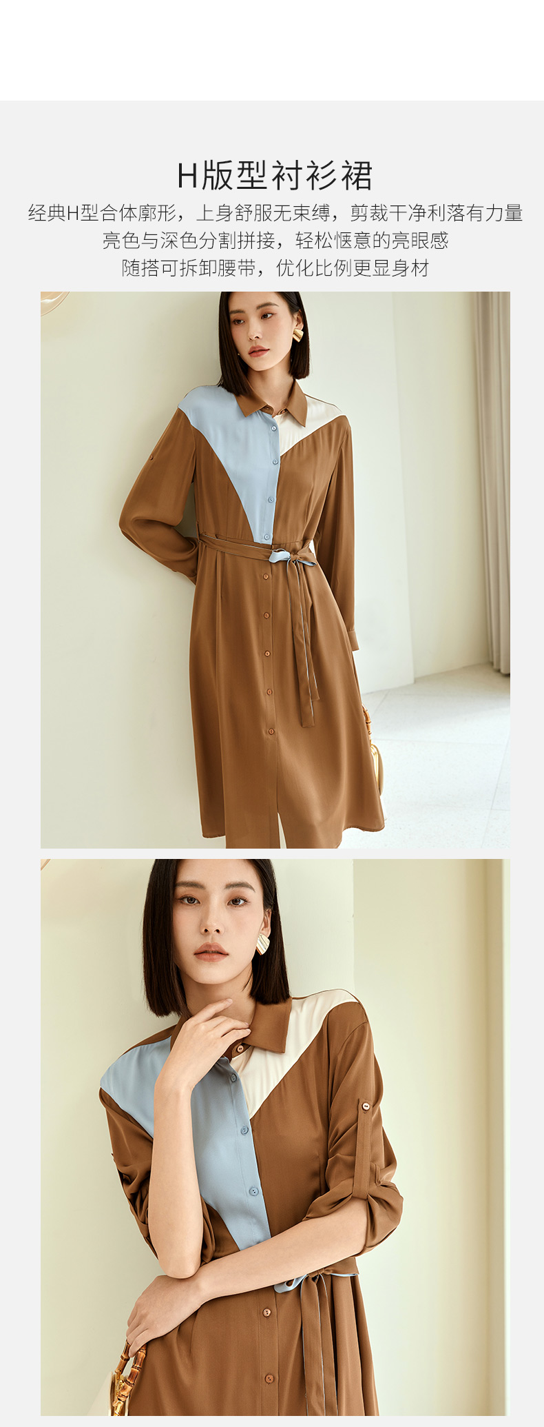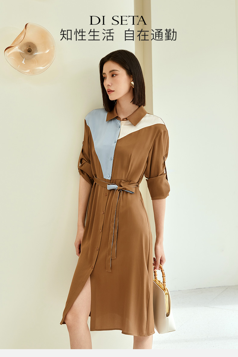 玳莎拼色复古真丝衬衫裙秋季新款中长款气质收腰高级感连衣裙 DC35301