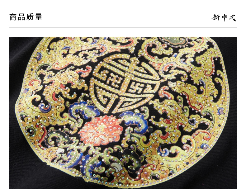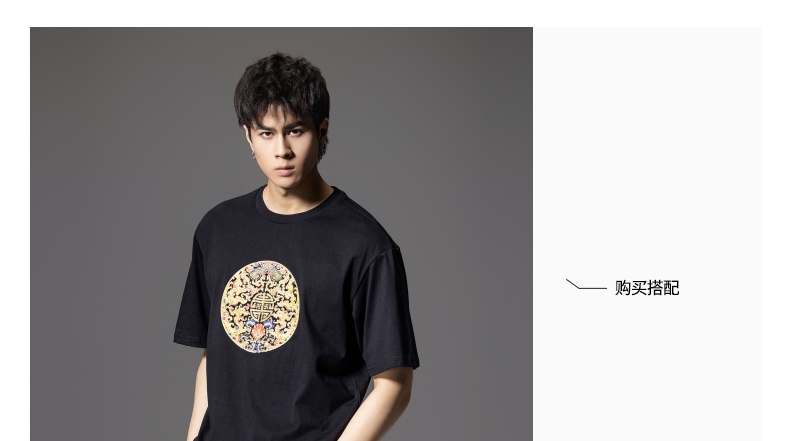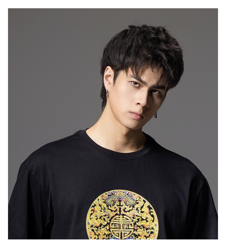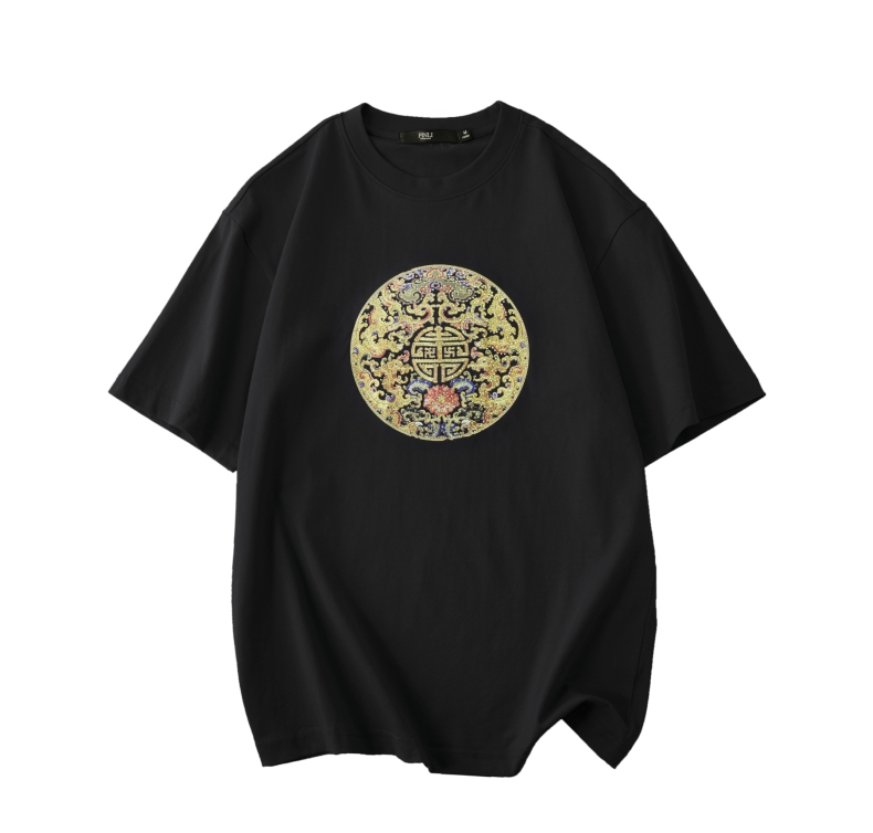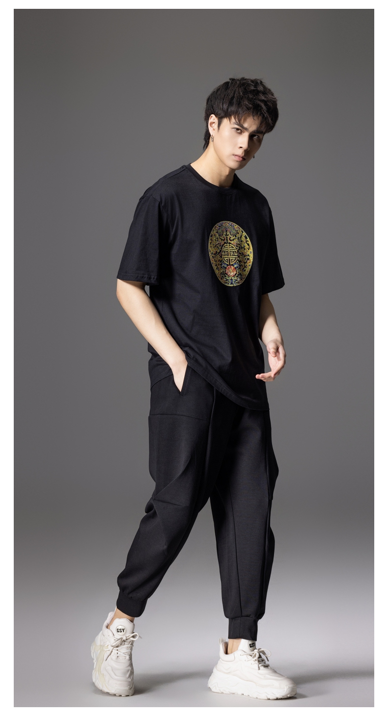 PINLI品立2024新中式夏季新款男烫钻印花圆领短袖T恤BG242111021