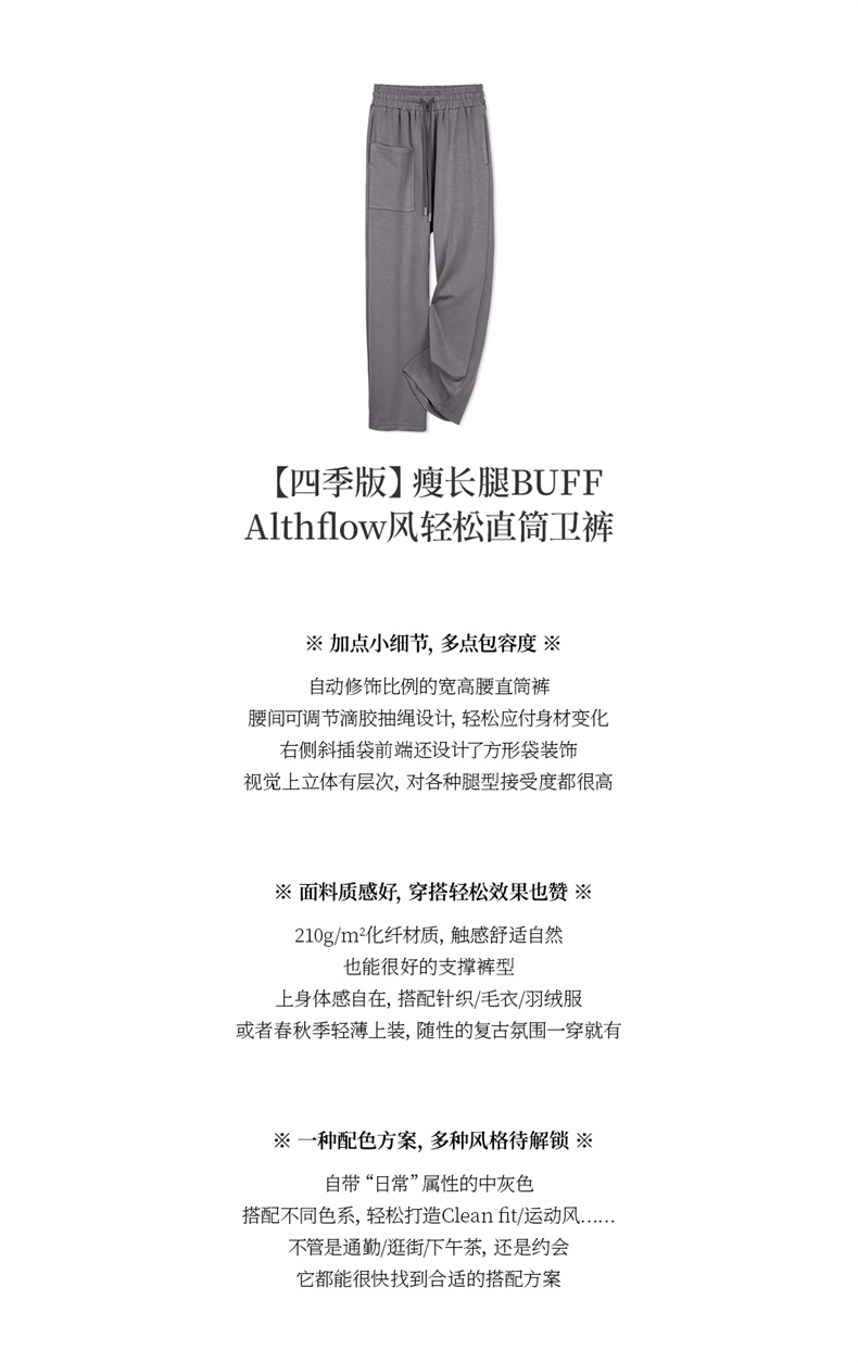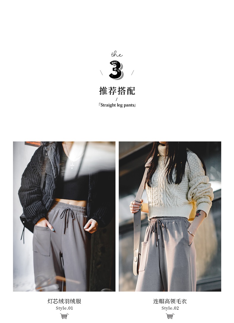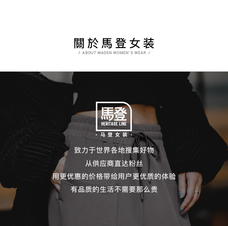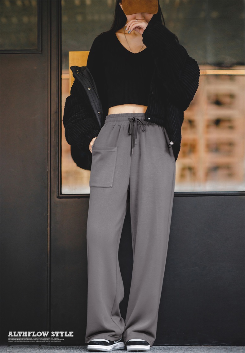 马登女装深灰色卫裤直筒垂感显瘦阔腿拖地腰绳弯刀裤加长版高个子