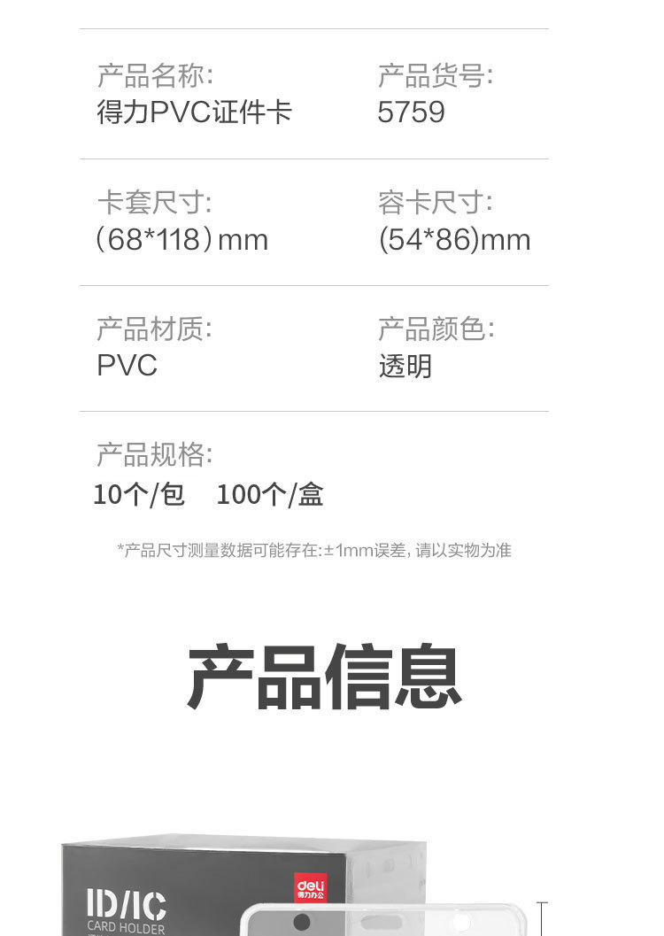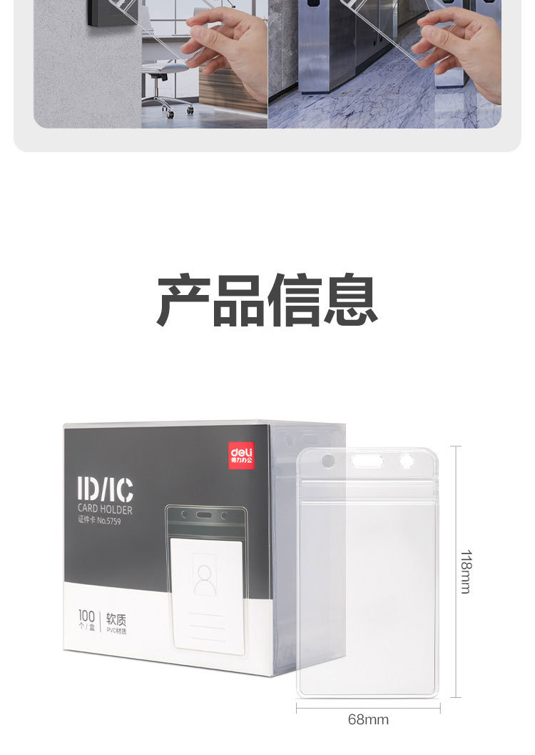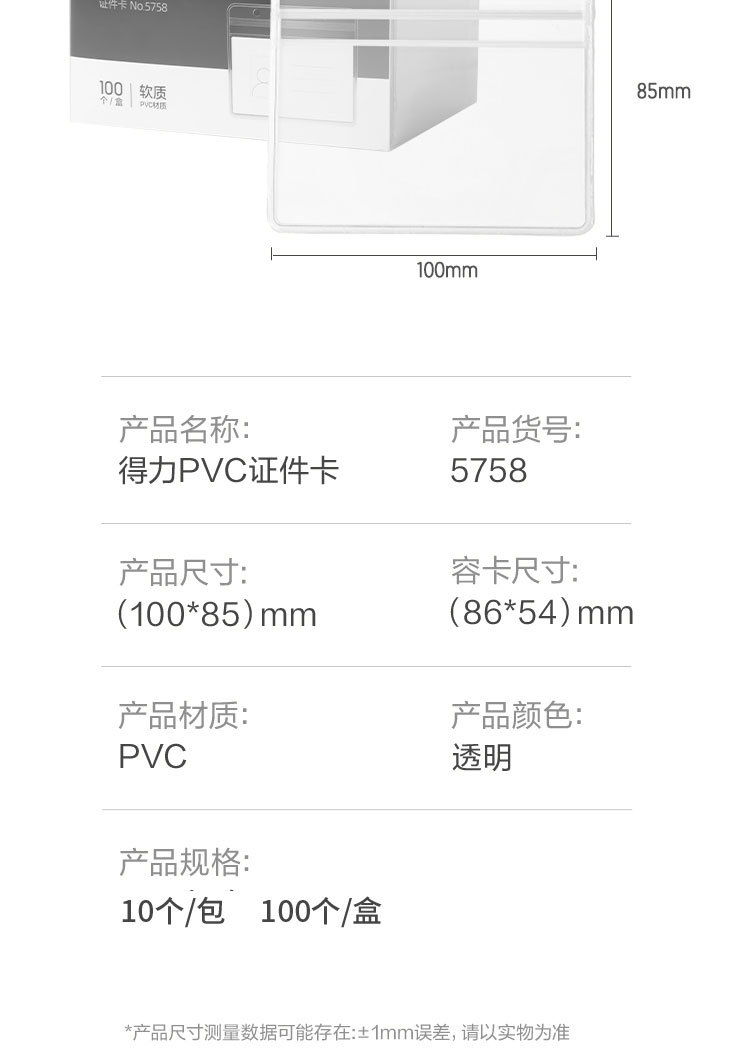 得力pvc防水横版竖式证件卡无挂绳胸卡套5758/5759工作卡证件卡套 1个