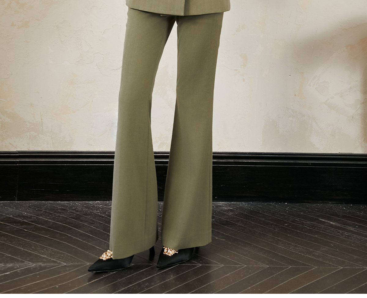 【定制款】秀场高定轻通勤羊毛西装套装女微喇裤【不支持退换】