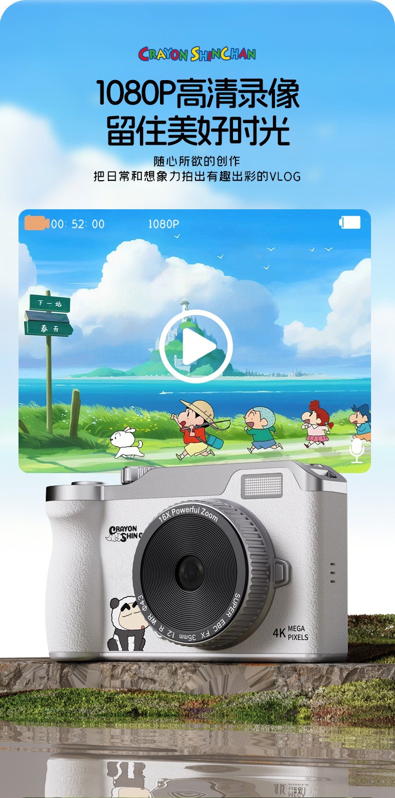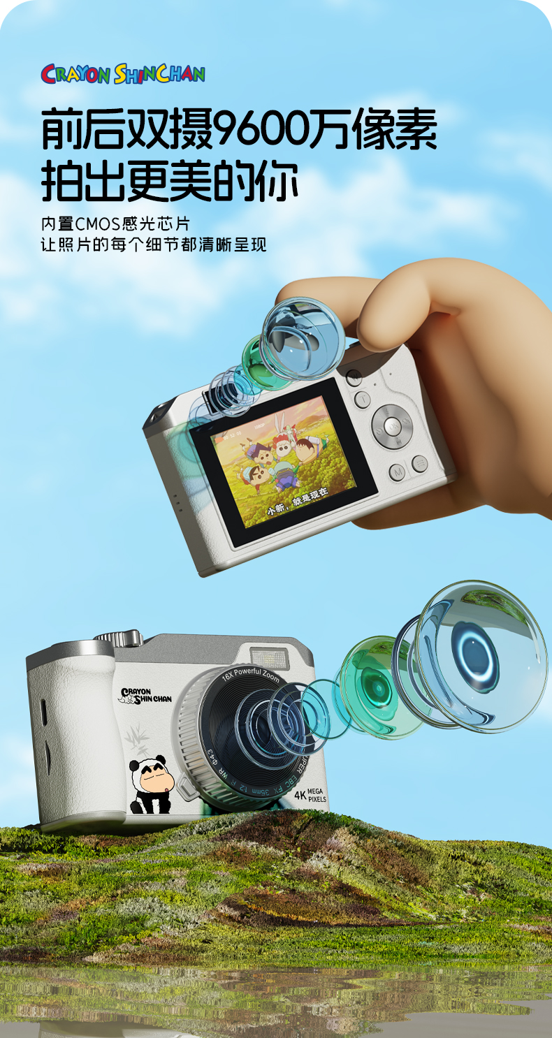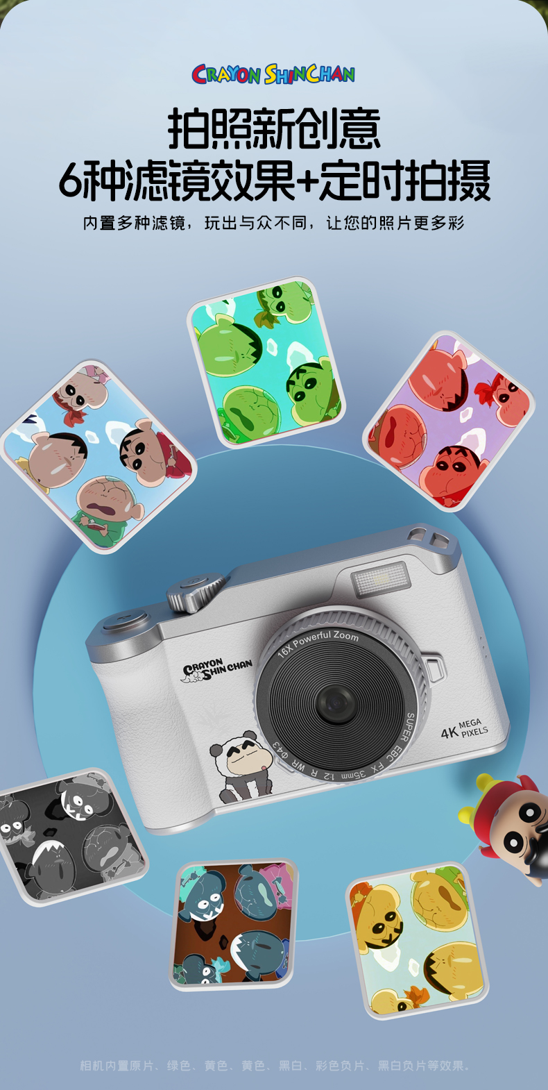 “蜡笔小新正版授权”梌野生 蜡笔小新联名版CCD相机 前后双摄 美不止一面(含读卡器套装)