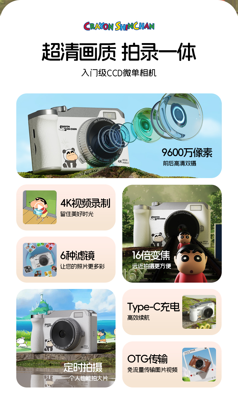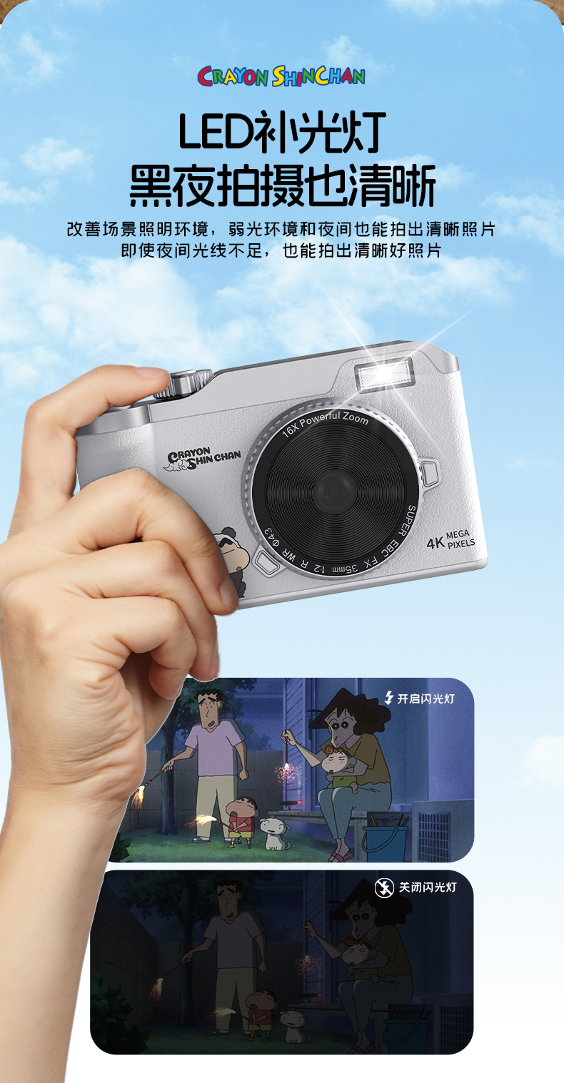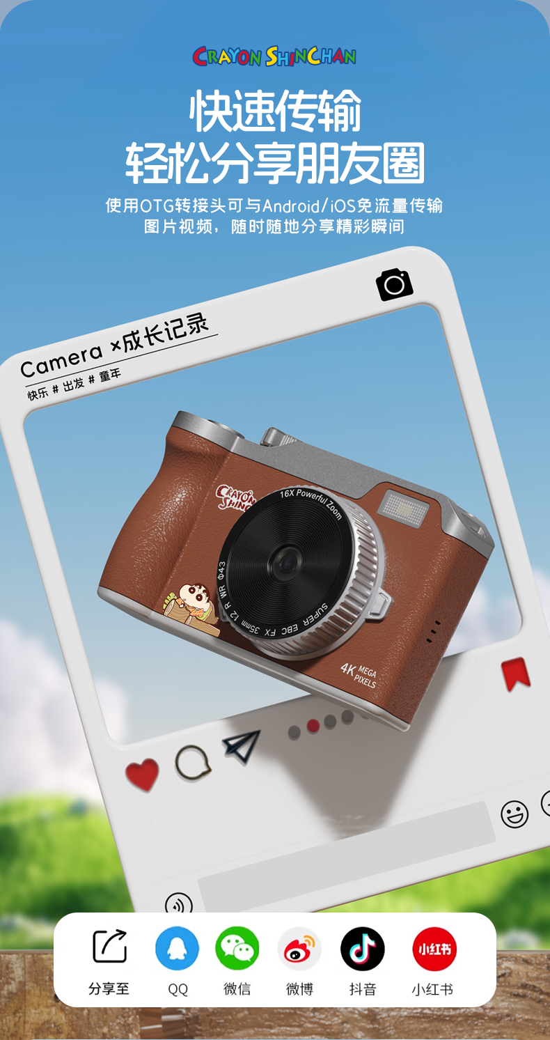 “蜡笔小新正版授权”梌野生 蜡笔小新联名版CCD相机 前后双摄 美不止一面(含读卡器套装)
