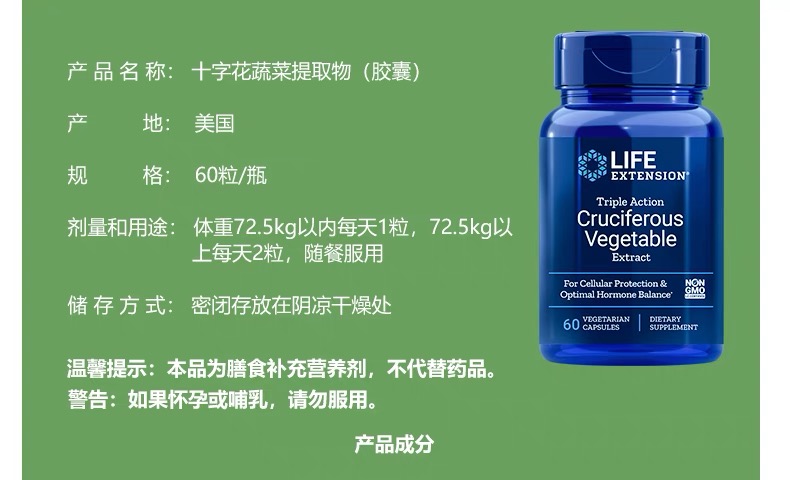 Life Extension三效十字花科蔬菜提取胶囊60粒