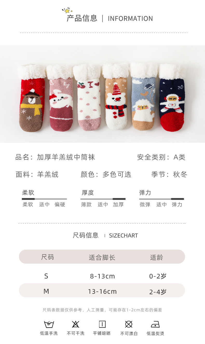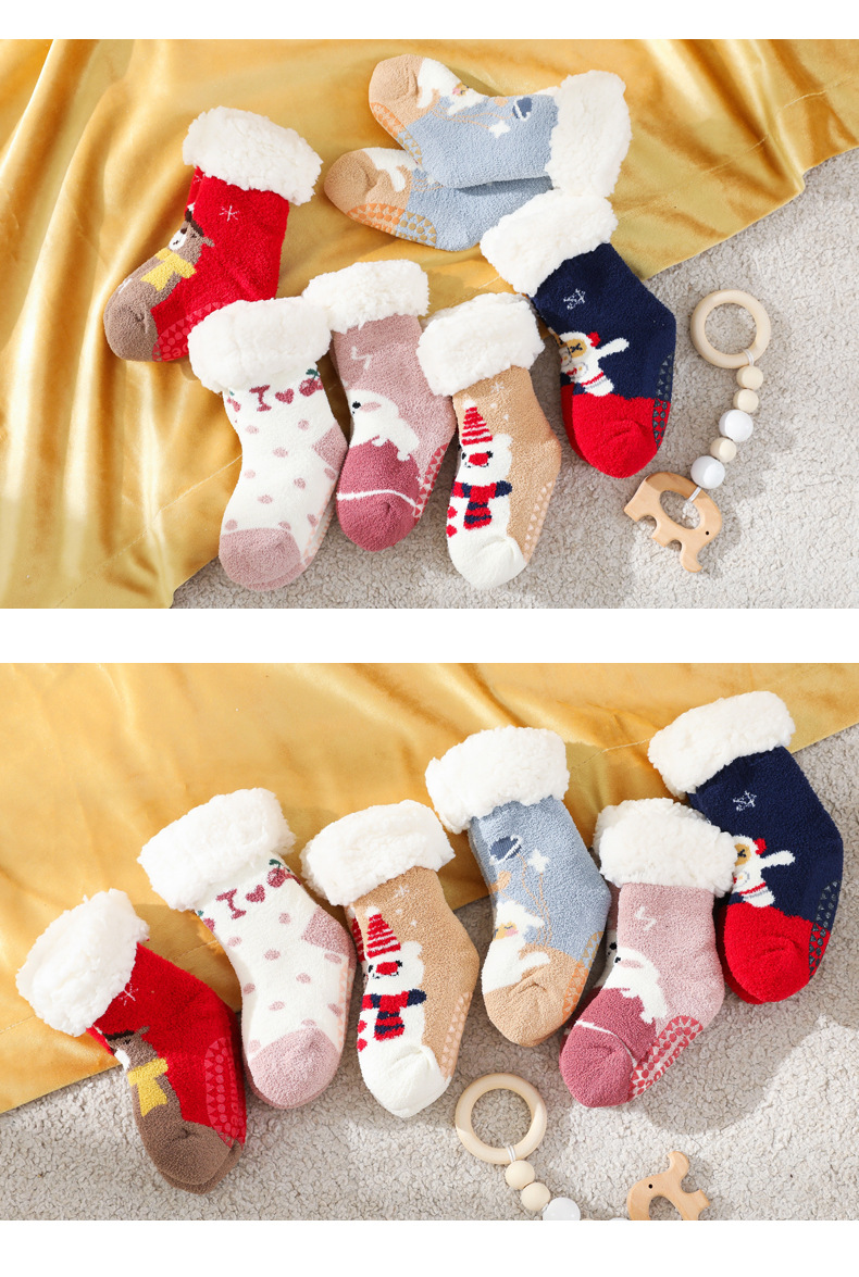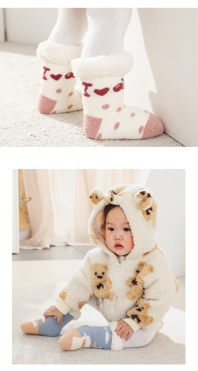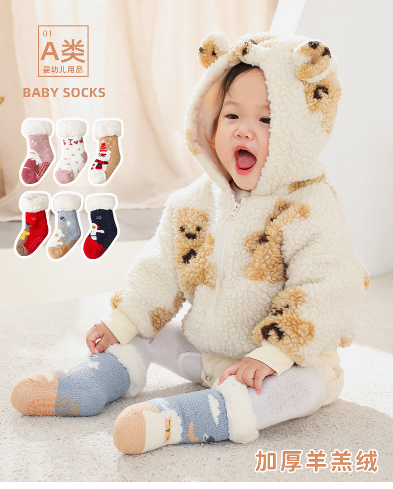 【加厚蓄热 柔软亲肤 2双装】A类秋冬加绒加厚羊羔绒珊瑚绒婴儿袜子防滑宝宝袜儿童家居地板袜