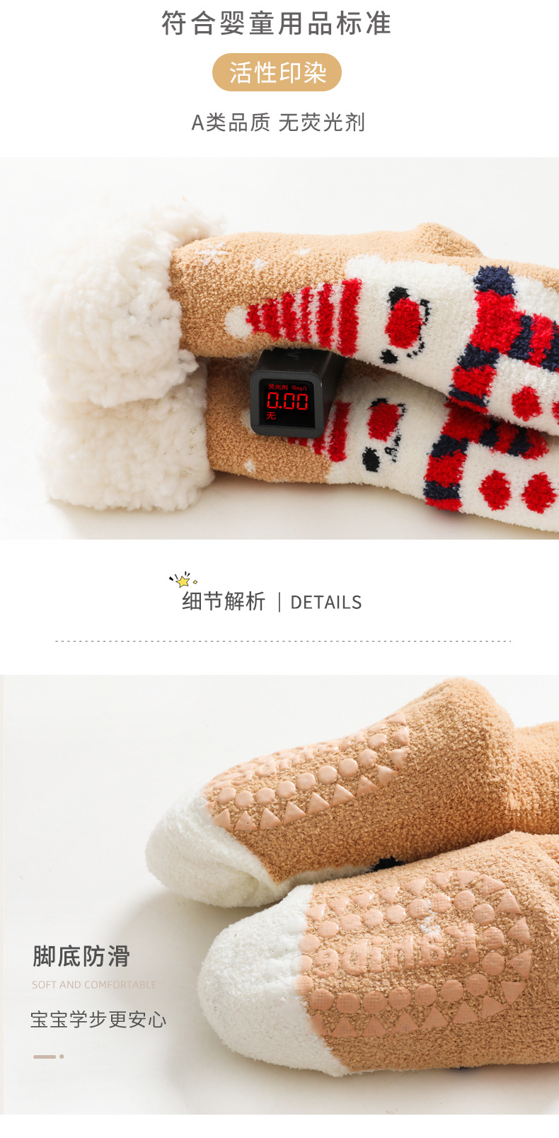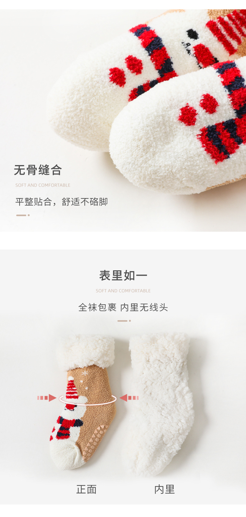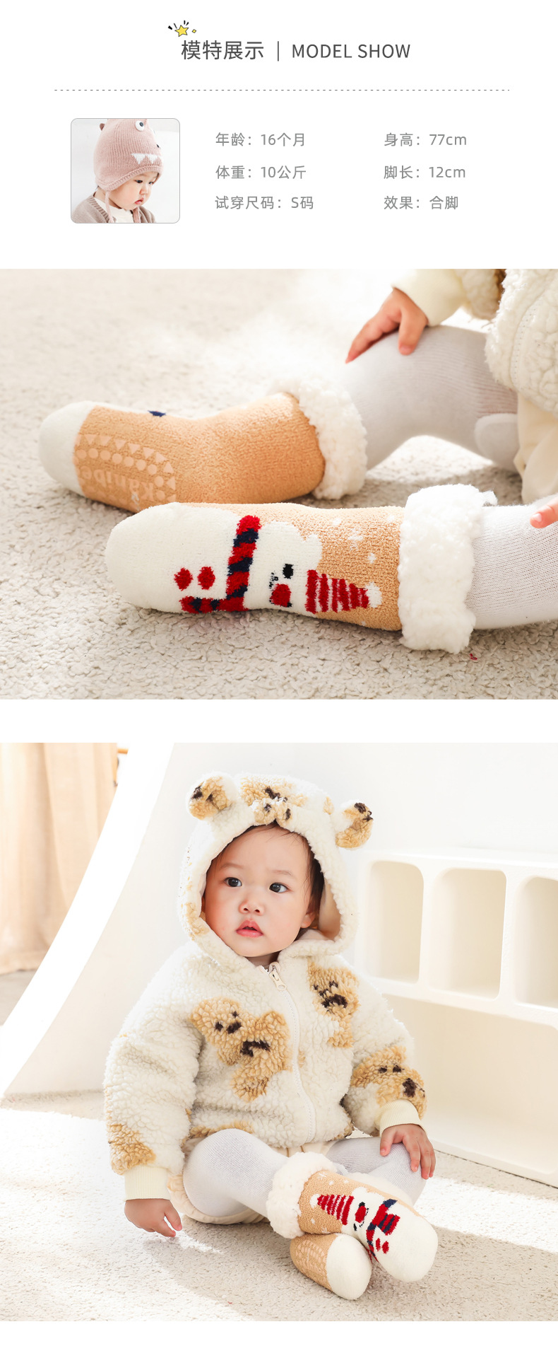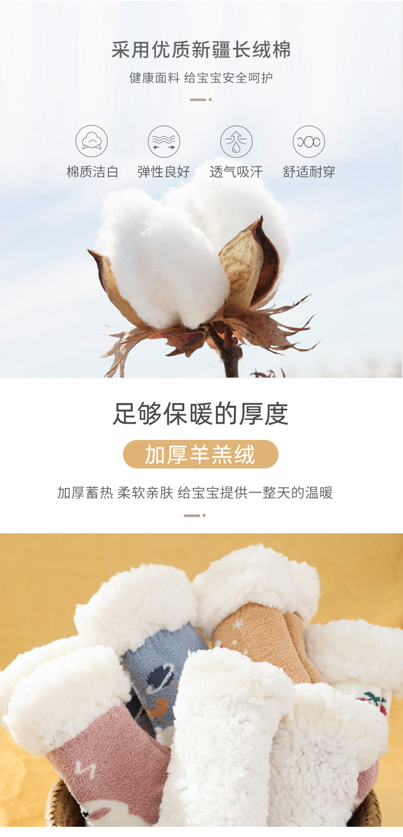 【加厚蓄热 柔软亲肤 2双装】A类秋冬加绒加厚羊羔绒珊瑚绒婴儿袜子防滑宝宝袜儿童家居地板袜