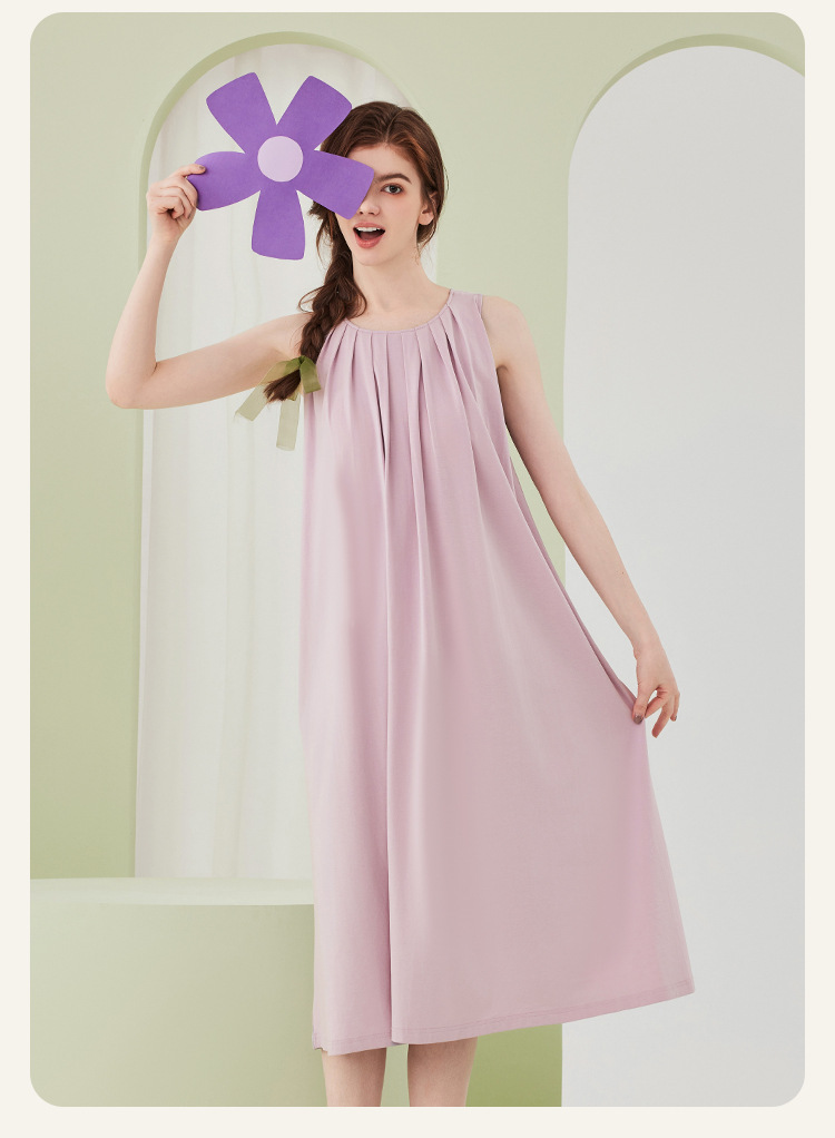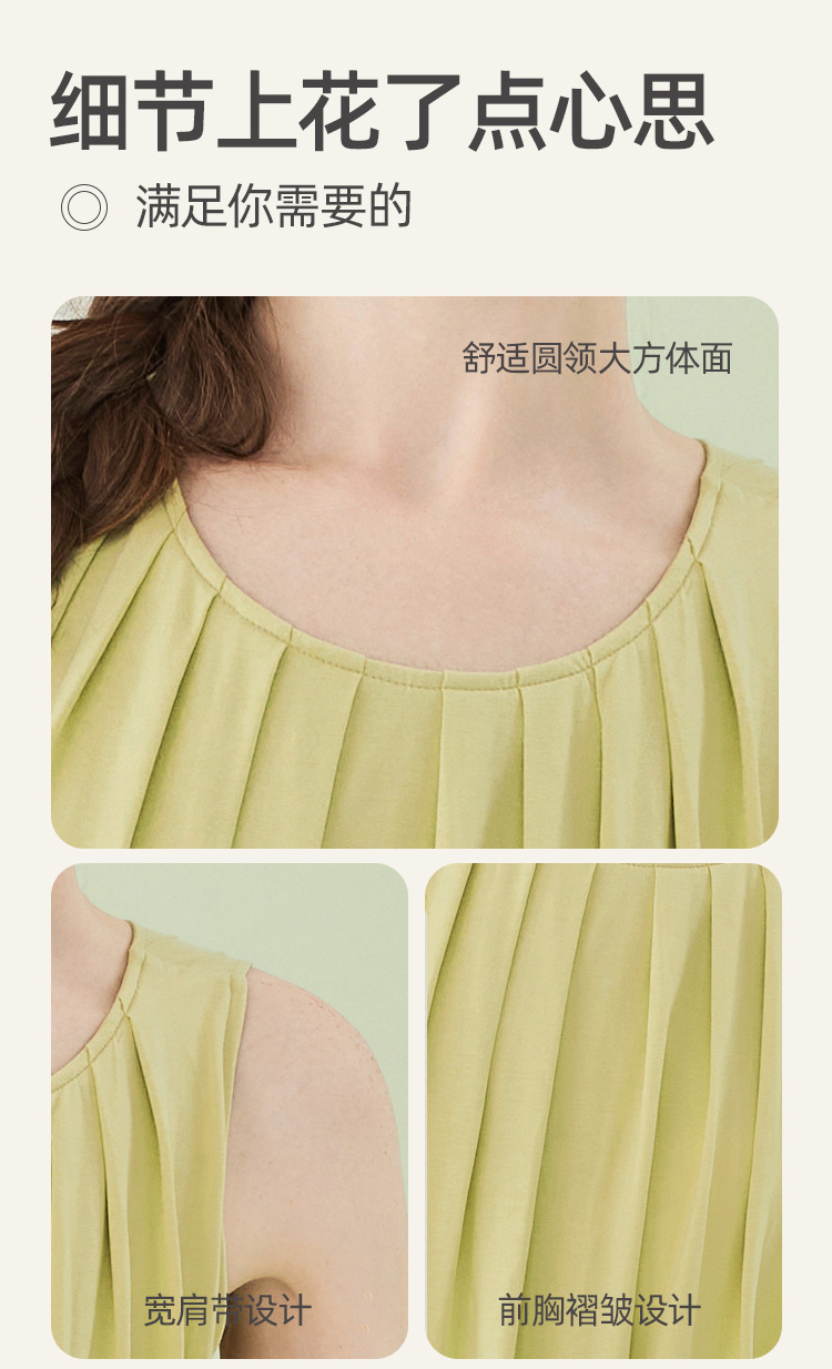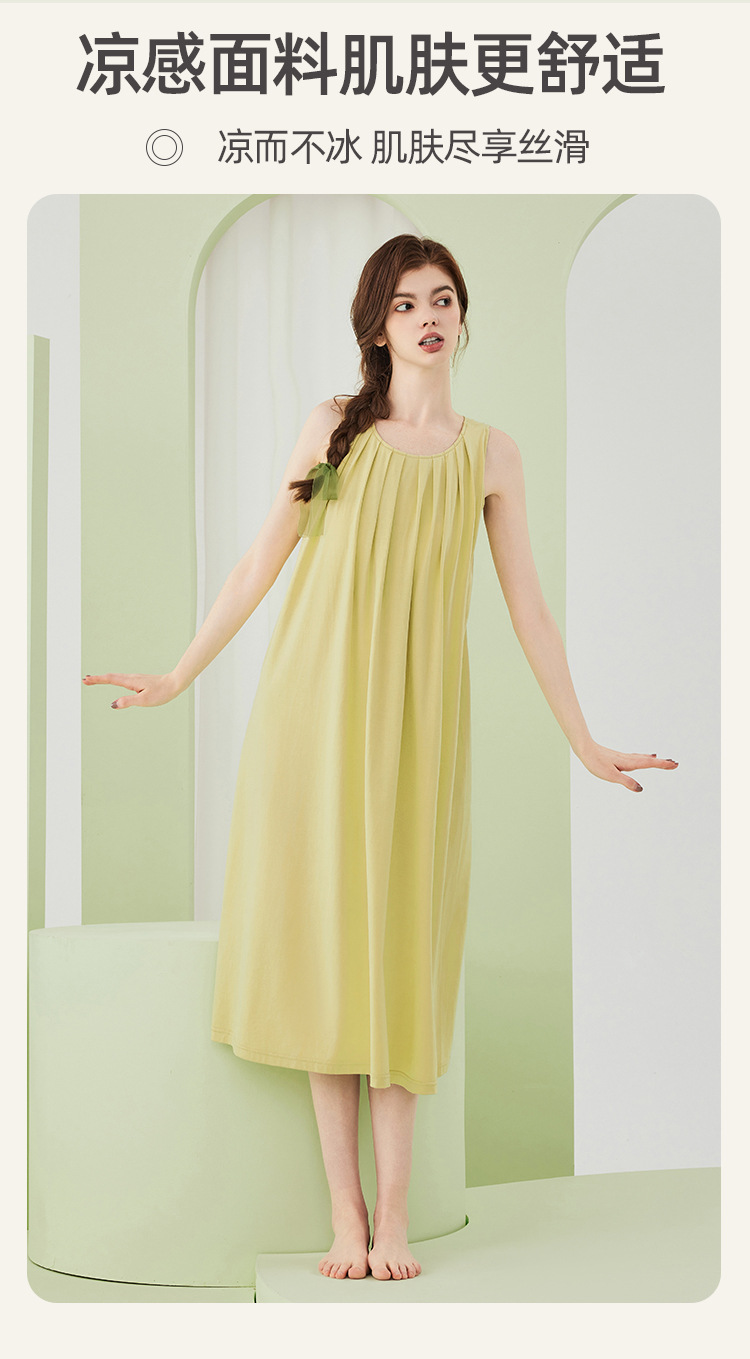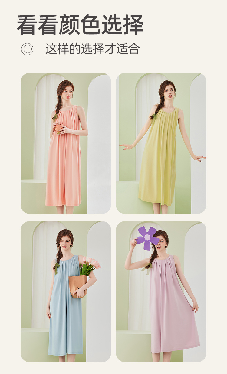 高级感兰精莫代尔棉无袖带胸垫睡裙女夏季睡衣裙女士家居服可外穿