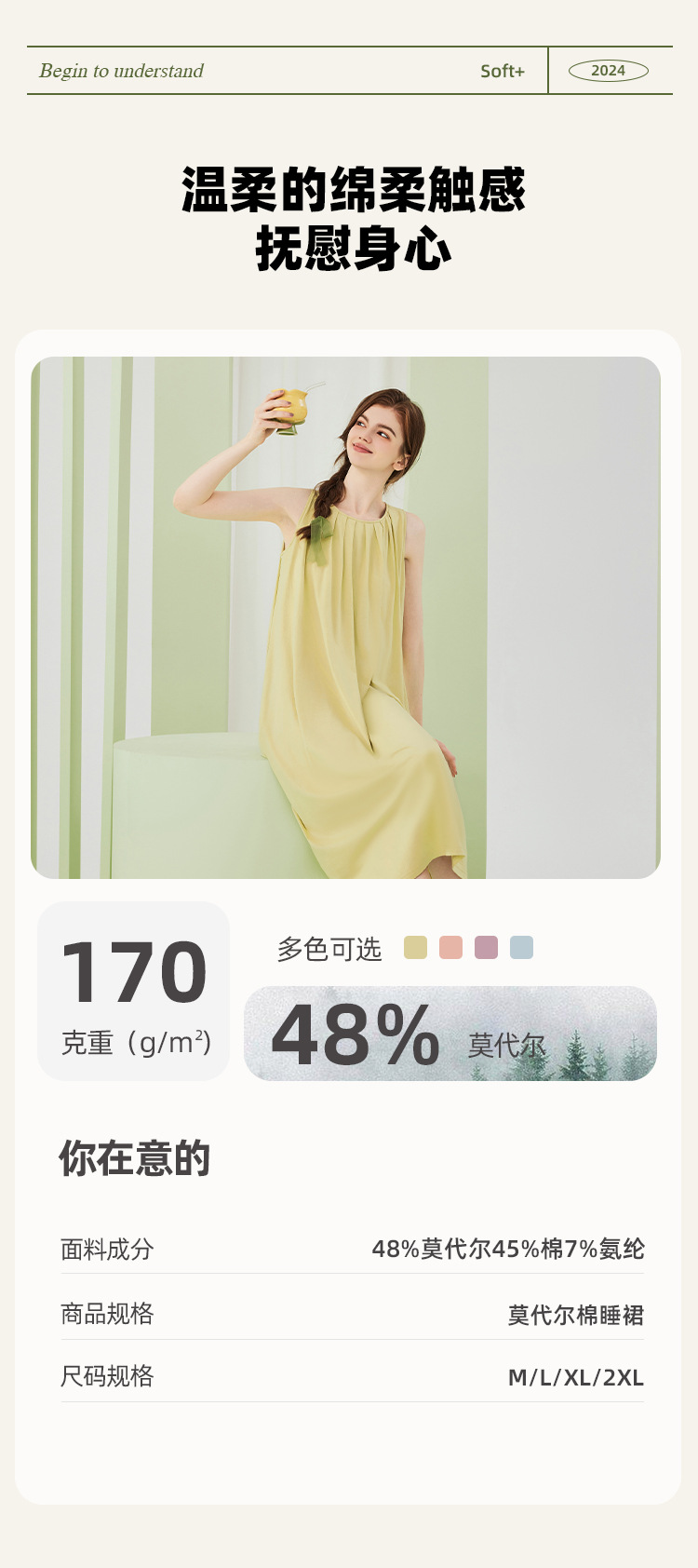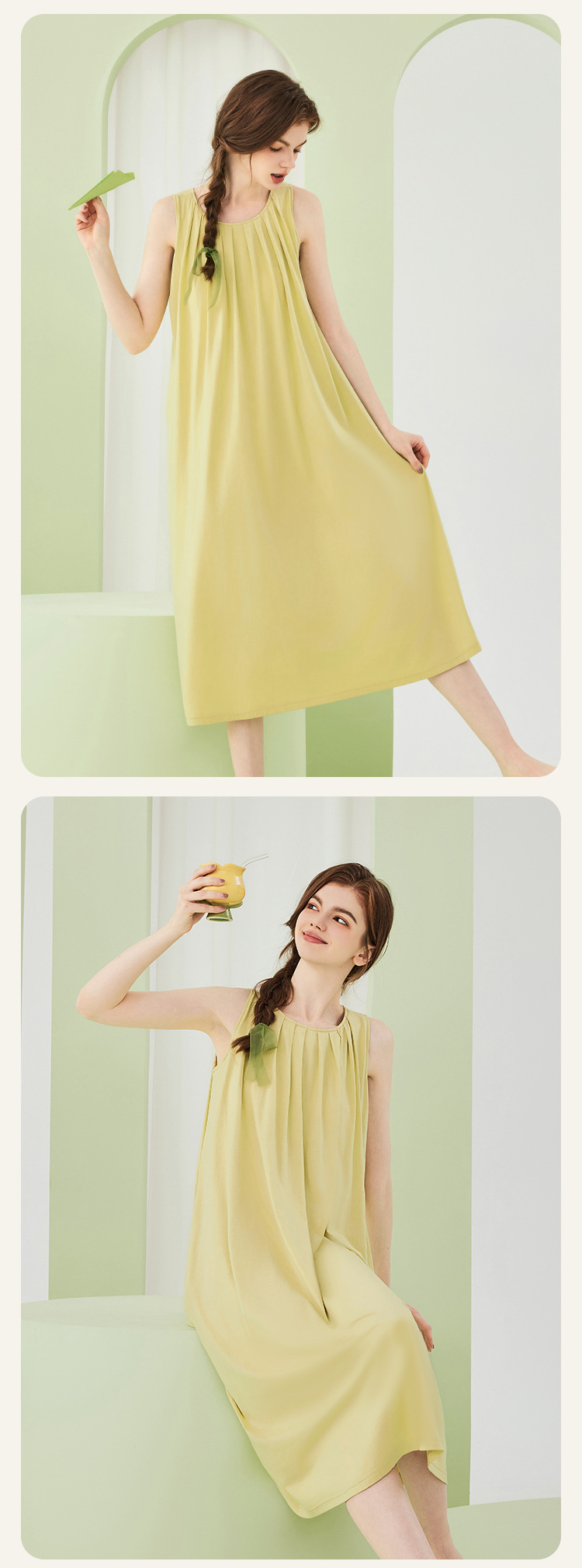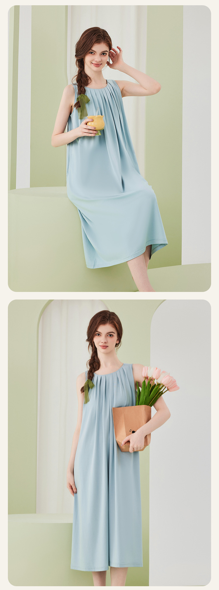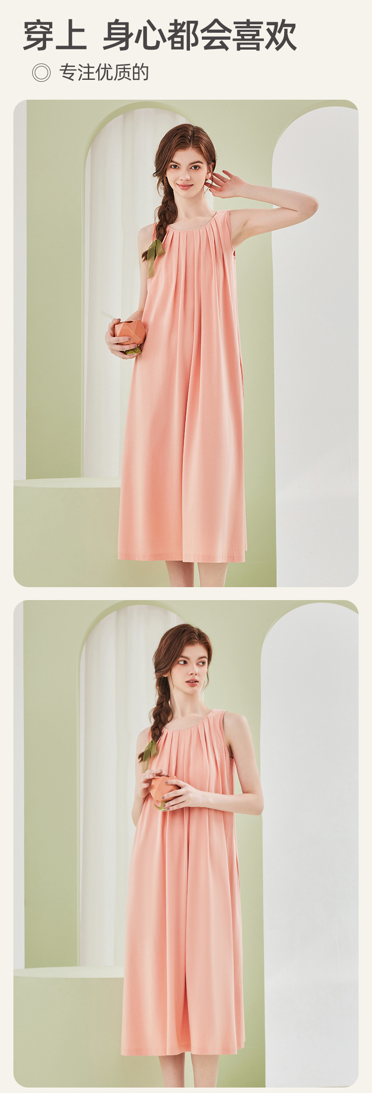 高级感兰精莫代尔棉无袖带胸垫睡裙女夏季睡衣裙女士家居服可外穿