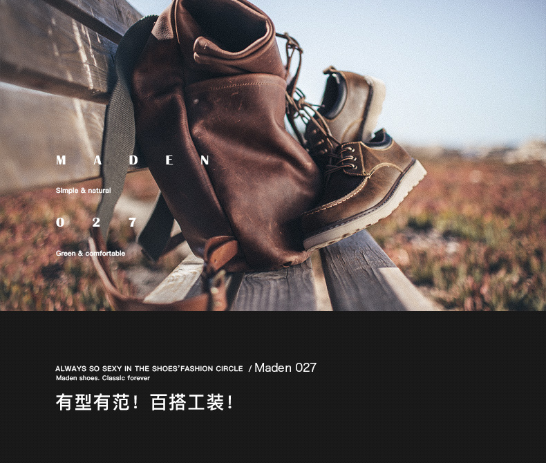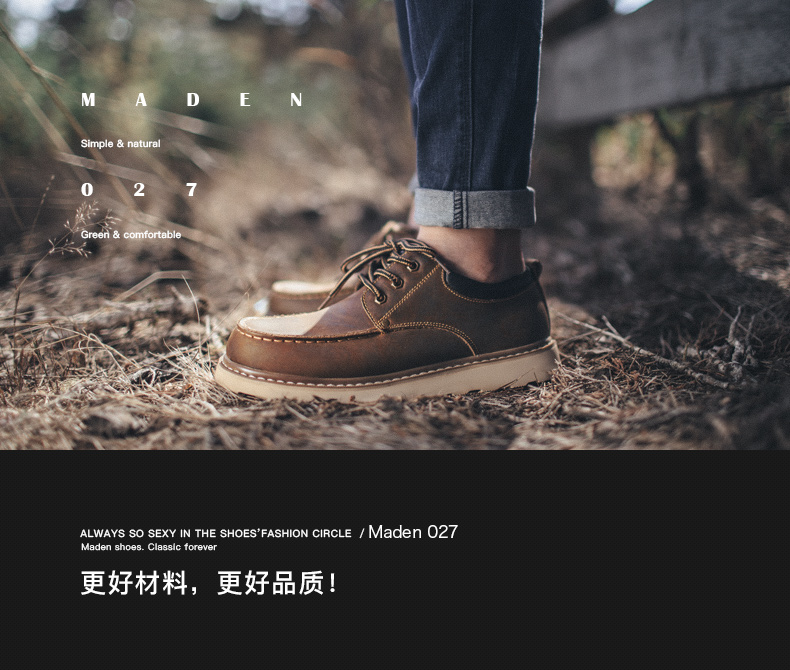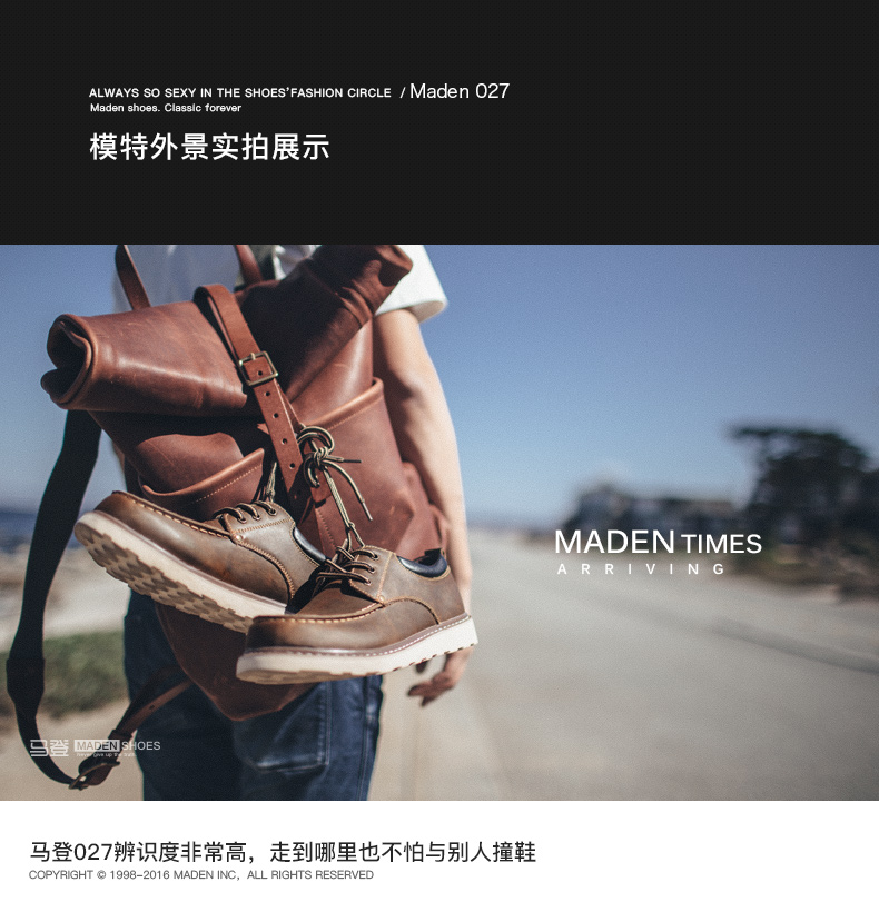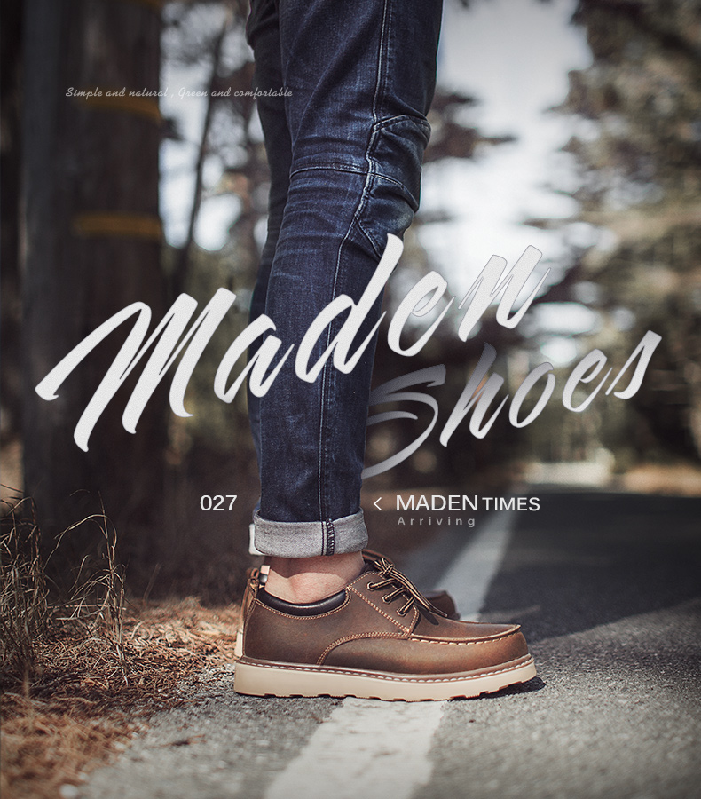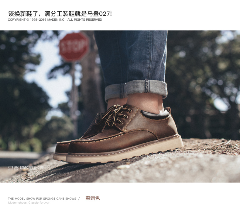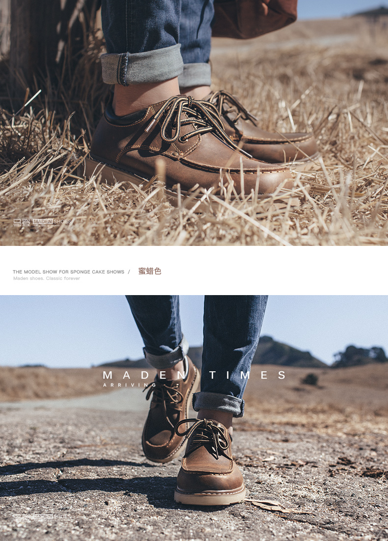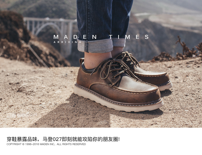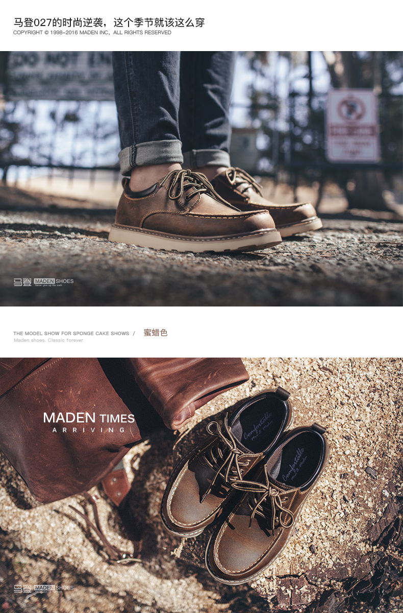 【马登男鞋】美式工装鞋夏季男鞋低帮休闲鞋英伦风马丁靴疯马皮户外大头皮鞋